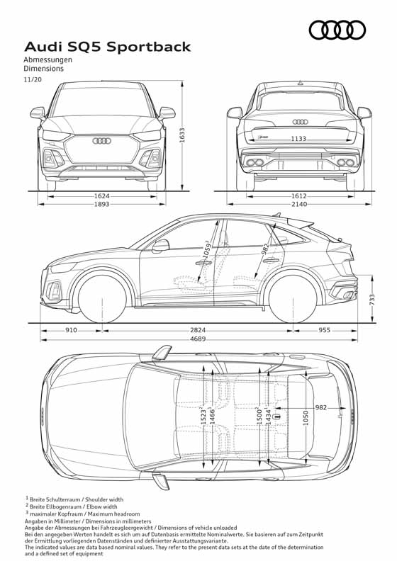 The luggage compartment has a volume of 510 l (18.01 cu ft), which increases to 1480 l (52.3 cu ft) when loaded to the roof and with the rear seats folded down. Audi also offers the newest member of the family with the optional rear seat bench plus, which can be shifted laterally and has adjustable seat back angles.