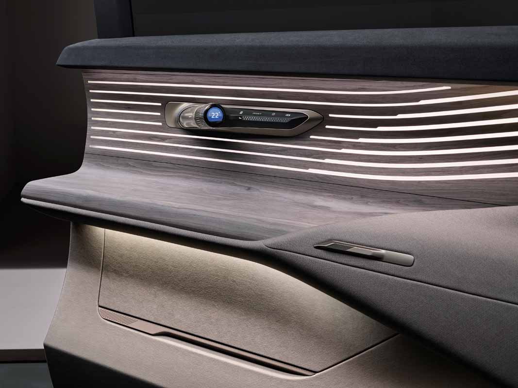 Many of the materials in the interior of the Audi urbansphere concept, such as the hornbeam veneers, come from sustainable sources. This choice of material makes it possible to use wood that has grown close to the site, and the entire trunk can be utilized. No chemicals are used during the manufacturing process.