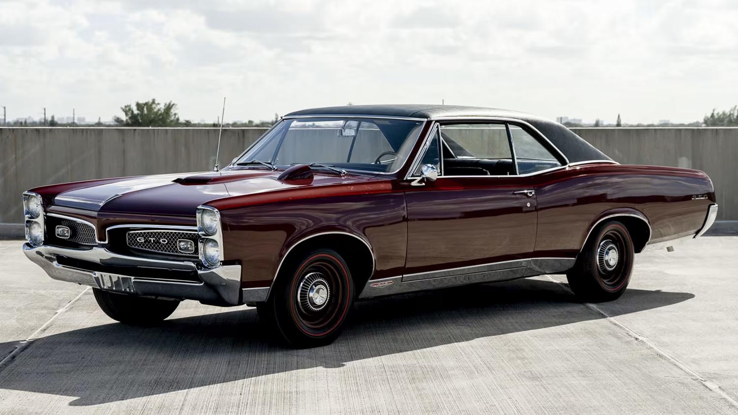 The 1964 Pontiac GTO hardtop remains the spark that ignited the muscle car revolution. This black-on-red example features a massive 421ci tri-power V8 and a four-speed manual. Documented by PHS and upgraded with Wilwood brakes, it offers a refined take on classic sixties street power.