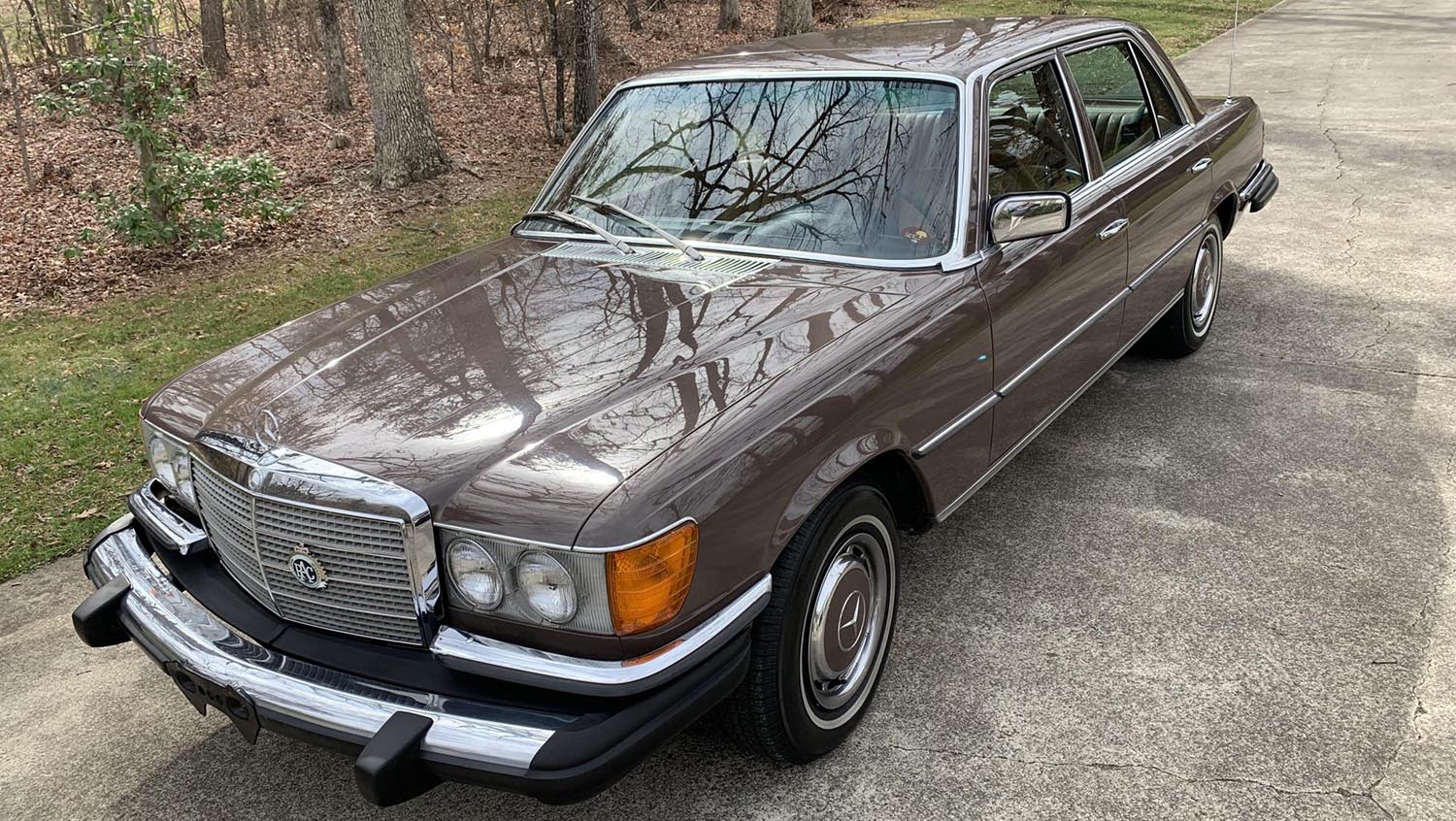 The 1976 Mercedes-Benz 450SEL is a classic of German luxury, formerly owned by legendary star Doris Day. Finished in Topaz Brown over tan leather, it features a 4.5-liter V-8 engine. Recent service includes a fueling system overhaul and a rebuilt steering box for the new owner.