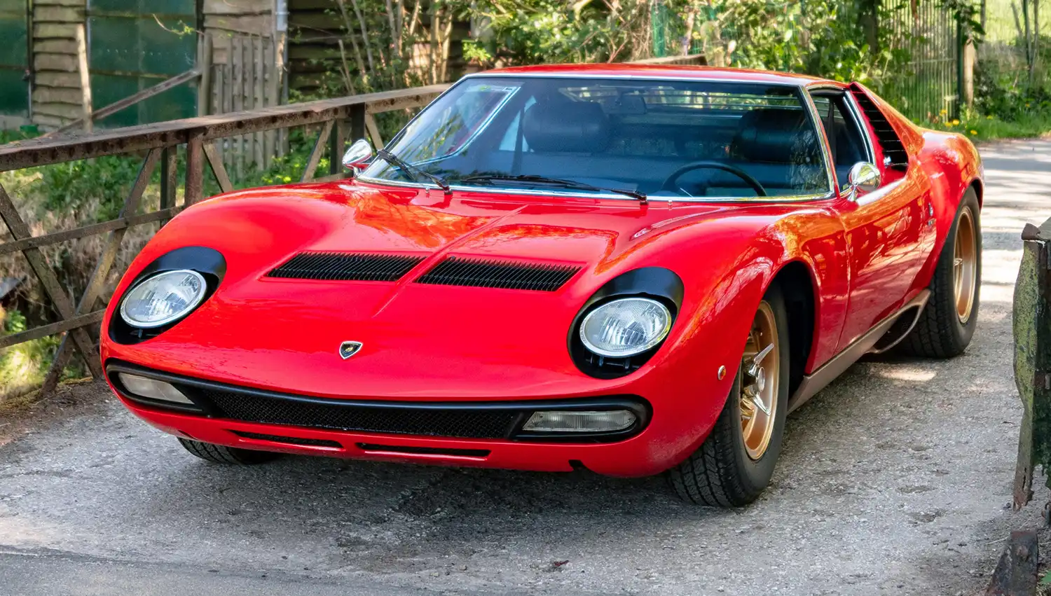 Engine and Performance: The heart of the Lamborghini Miura P400 SV is its magnificent 3.9-liter (3,929 cc) naturally aspirated V-12 engine, mounted transversely behind the driver. This engineering masterpiece, featuring dual overhead camshafts per bank and four Weber carburetors, produced a claimed output of 385 horsepower at 7,850 rpm and 295 lb-ft of torque at 5,750 rpm. The “split-sump” lubrication system, a highly desirable feature of later SV models, provided separate oiling for the engine and the gearbox, addressing earlier reliability concerns. This powerful engine, coupled with a five-speed manual transmission, allowed the Miura SV to achieve a claimed top speed in the region of 180 mph (290 km/h), making it one of the fastest production cars of its era. The exhilarating sound and the raw power delivery of this iconic V-12 engine contribute significantly to the Miura’s legendary status and the visceral driving experience it offers.