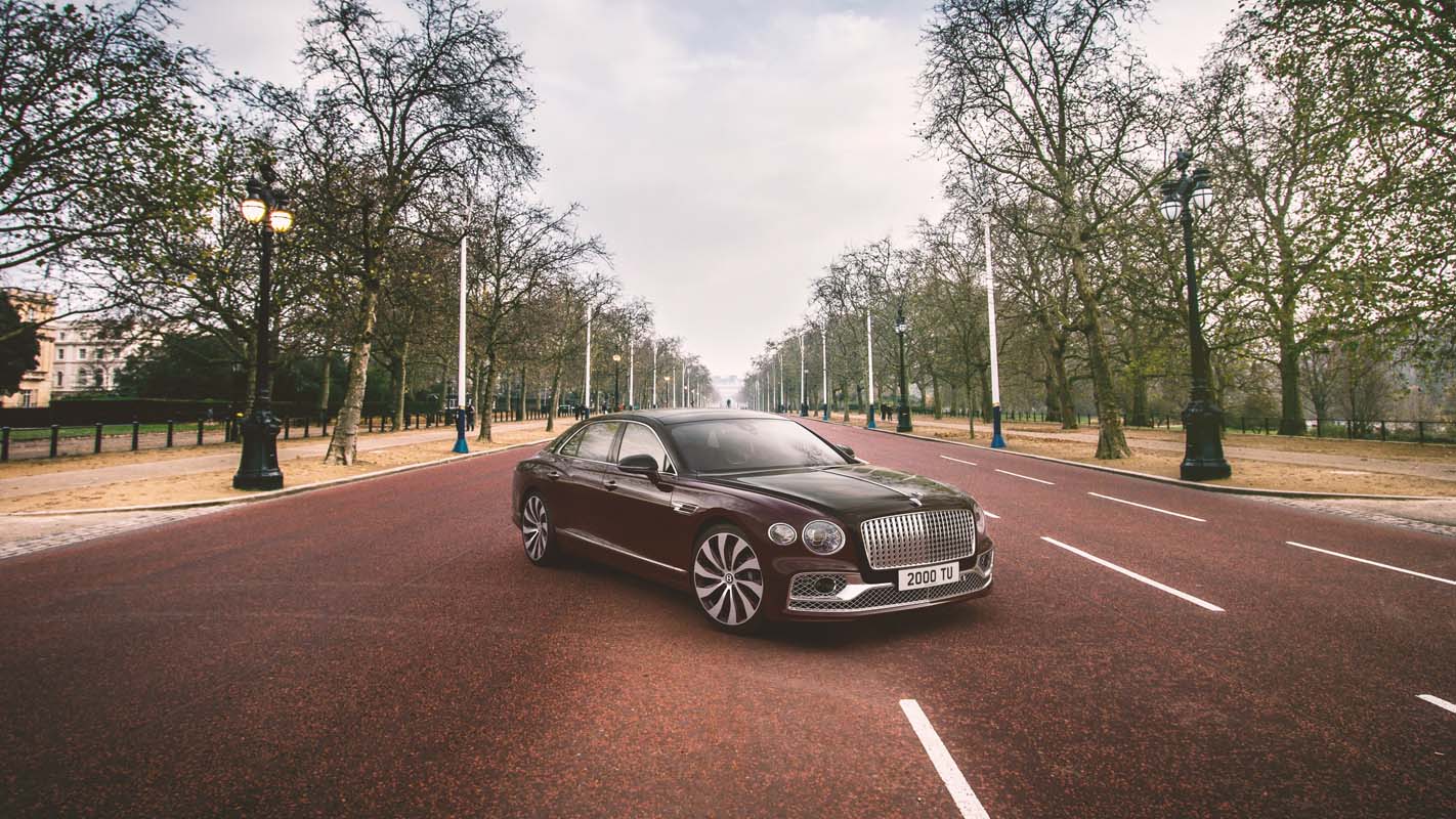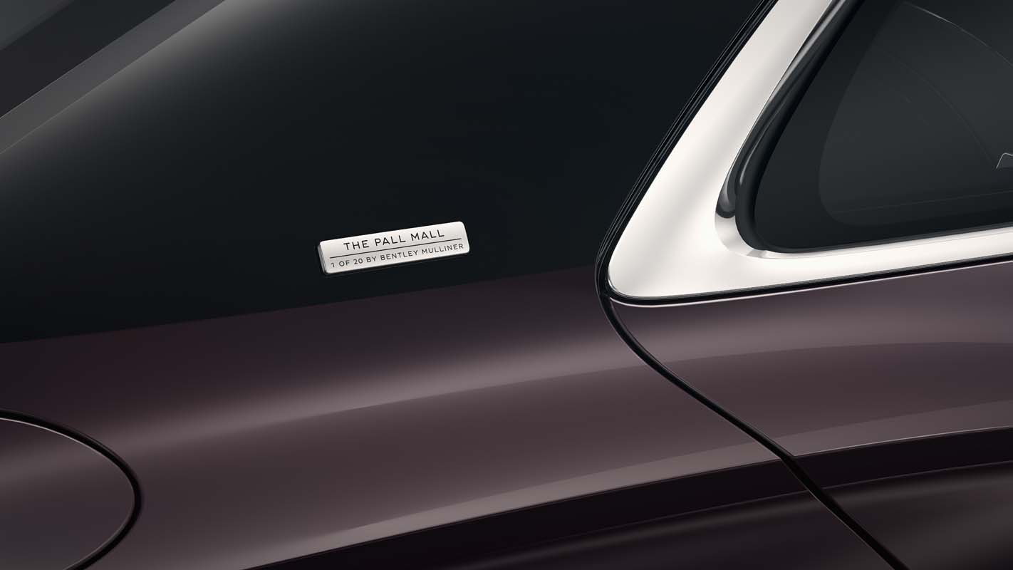 The Pall Mall Flying Spur is a 2022 homage to the State Limousine, featuring bespoke duo-tone Beluga over Claret paint with matching 22” ten-spoke wheels in a claret-painted and bright-machined finish. Exterior bright chromework and a “The Pall Mall” badge to the C-pillar complete the regal exterior.