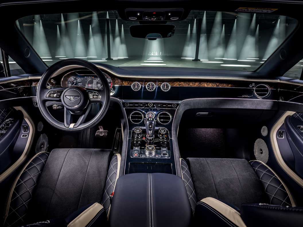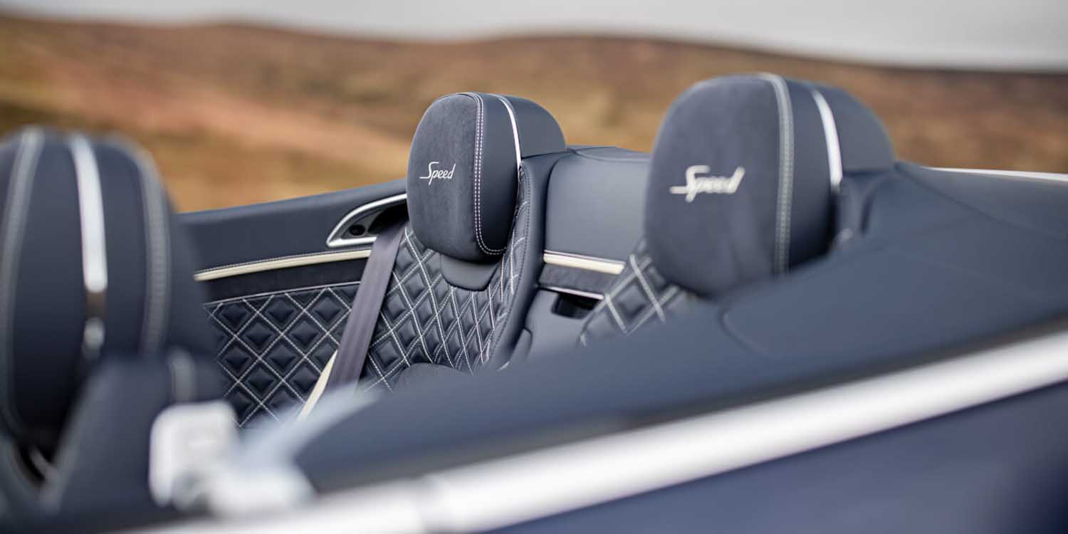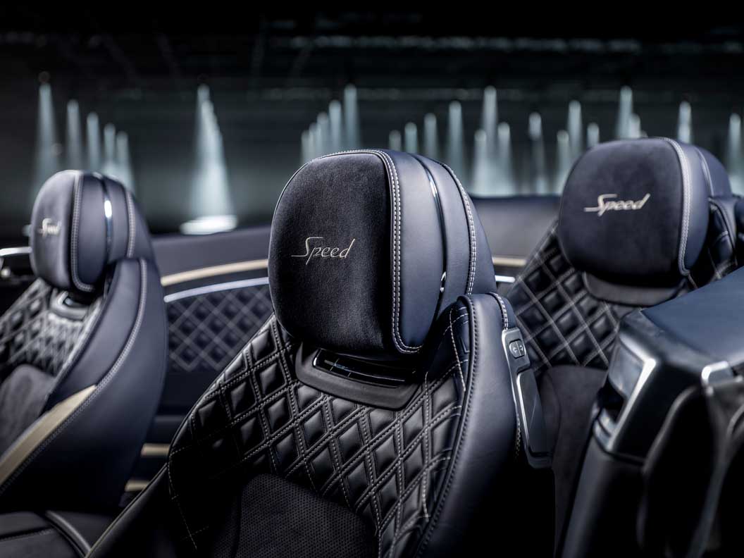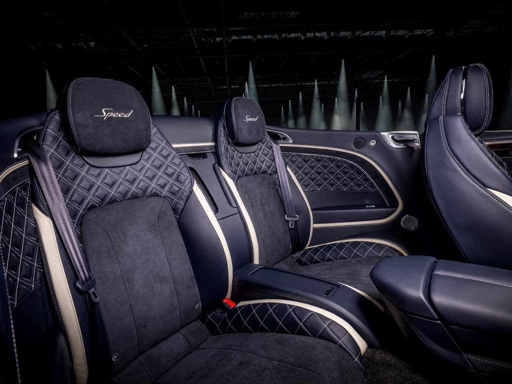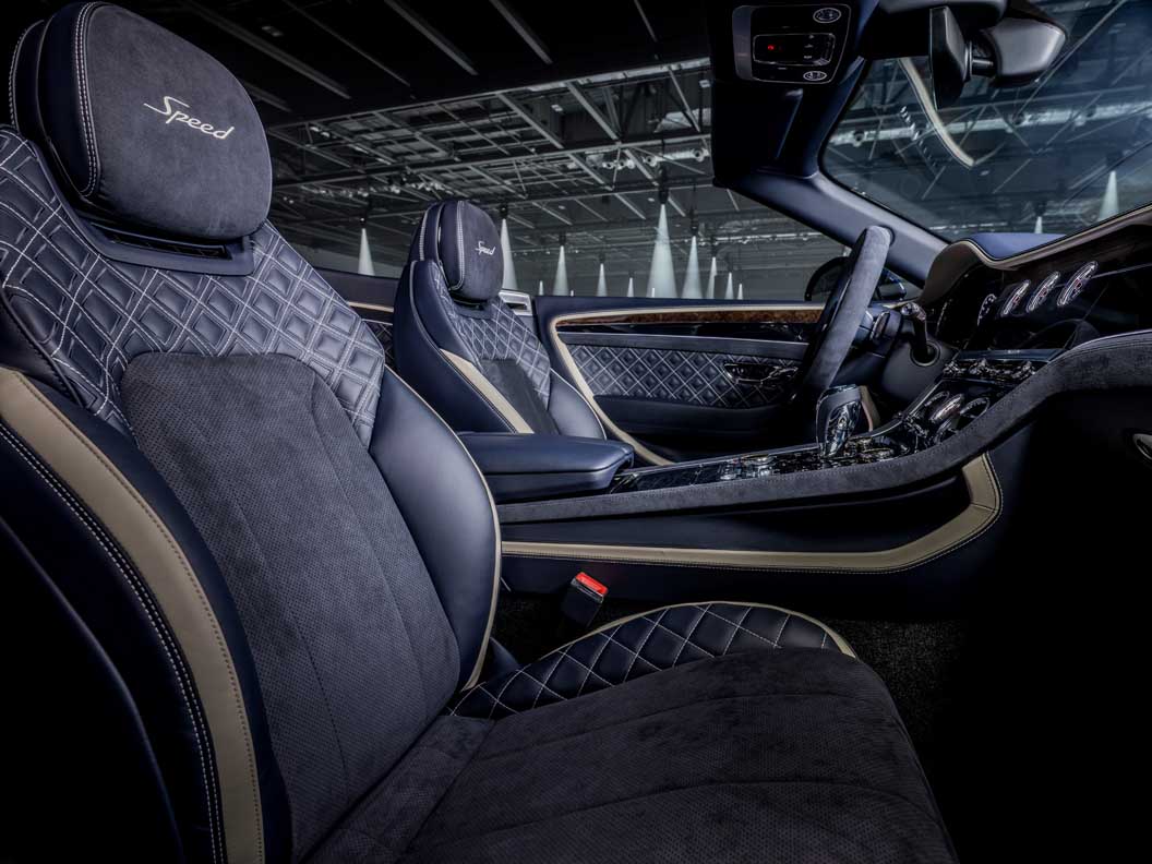Diamond in Diamond quilting and Speed embroidered headrests hint at the performance characteristics of the most potent Continental GT Convertible, while Mono Tone colour split with Alcantara/leather is a no cost option.