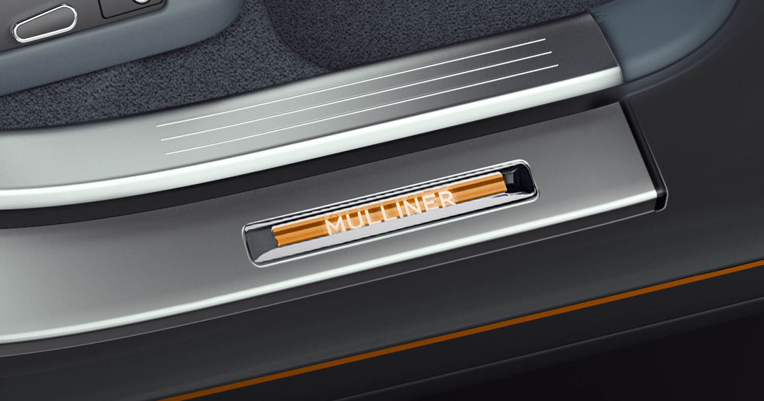 In an automotive first, Mulliner has also showcased the technical precision and sporting prowess of Bentley with the use of Titanium-enriched carbon fibre on the waist rails and fascia panel. Previously, this highly technical finish was only used in the aviation industry. The treadplates are finished in one of the five accent colours and feature a ‘Mulliner’ illumination.