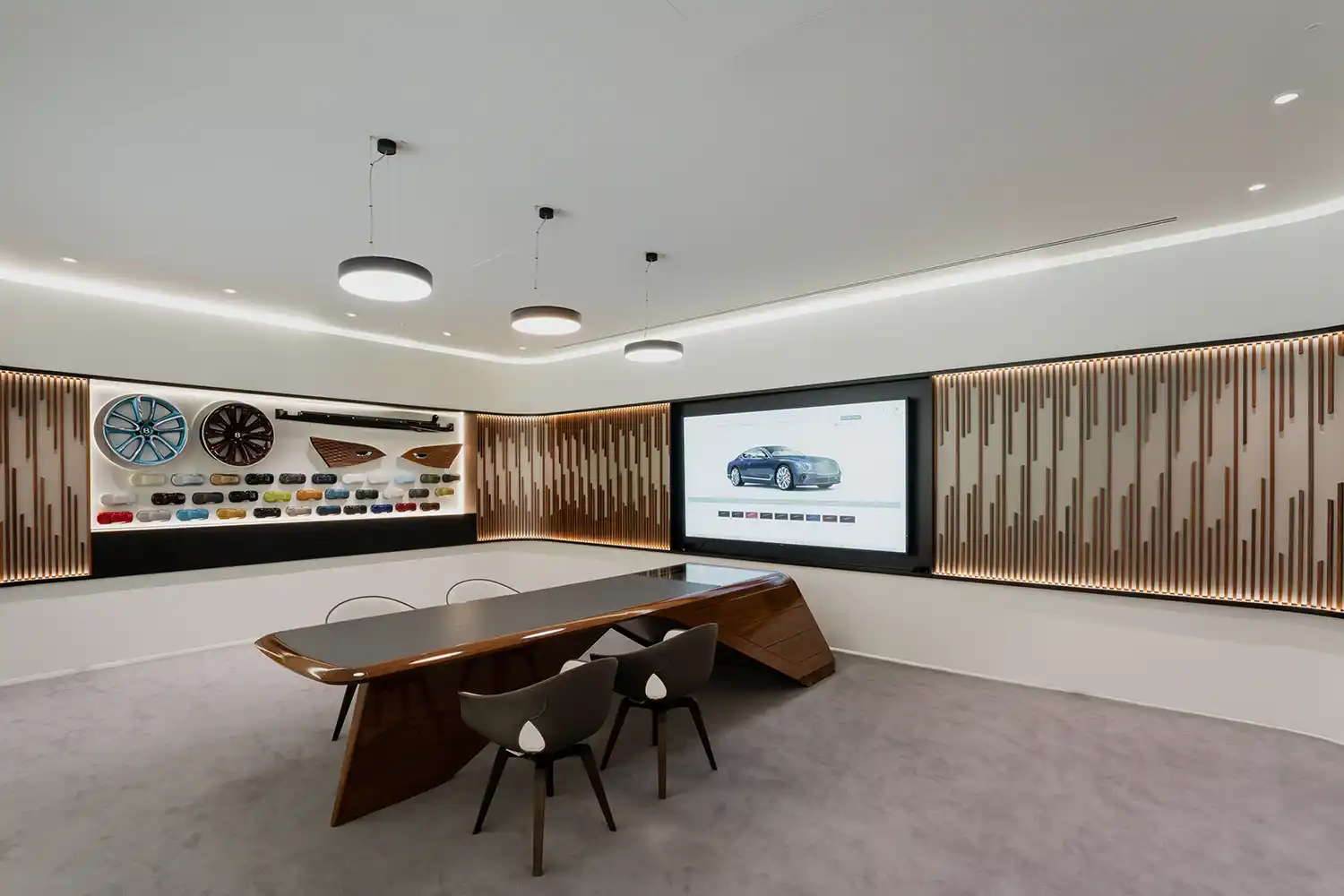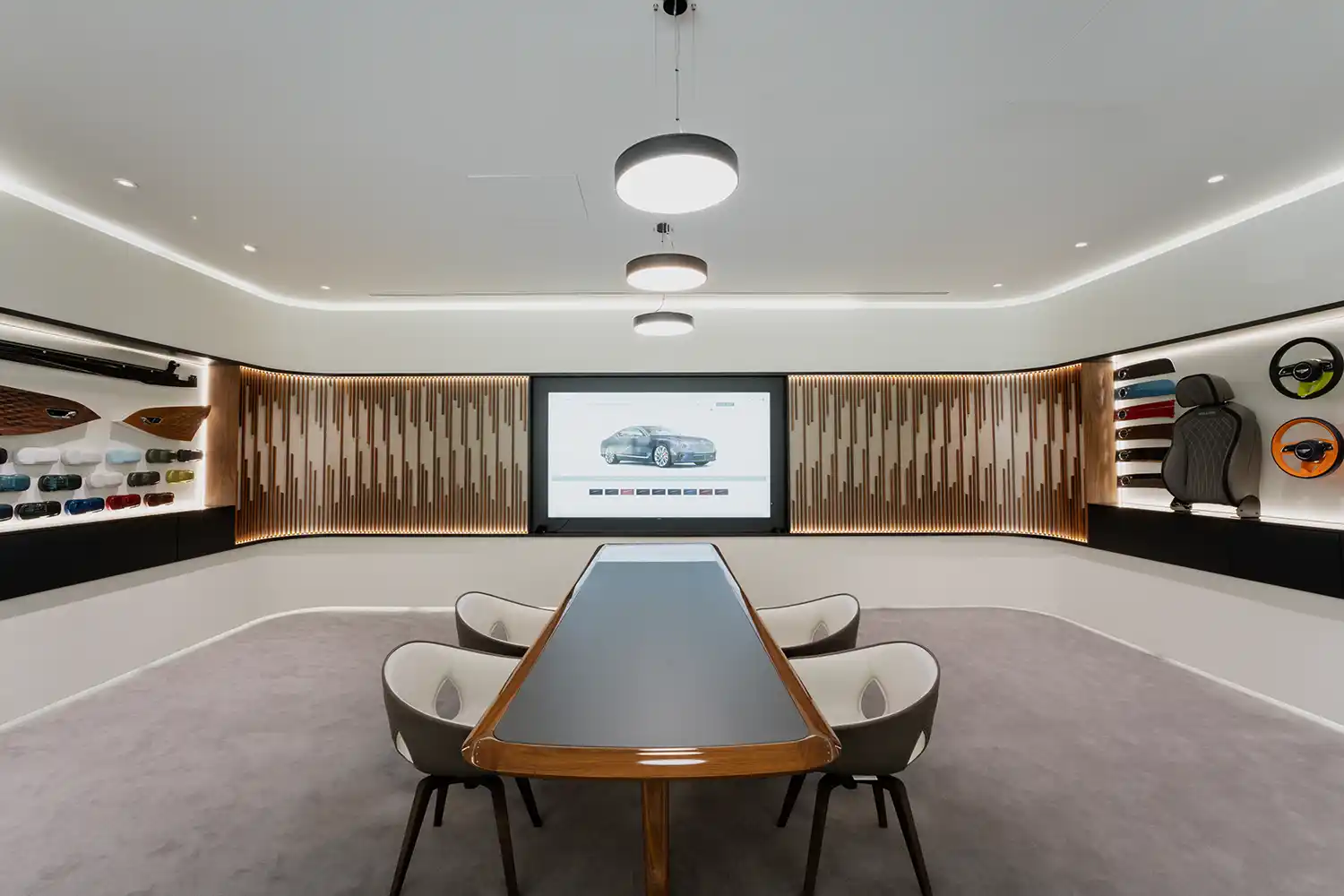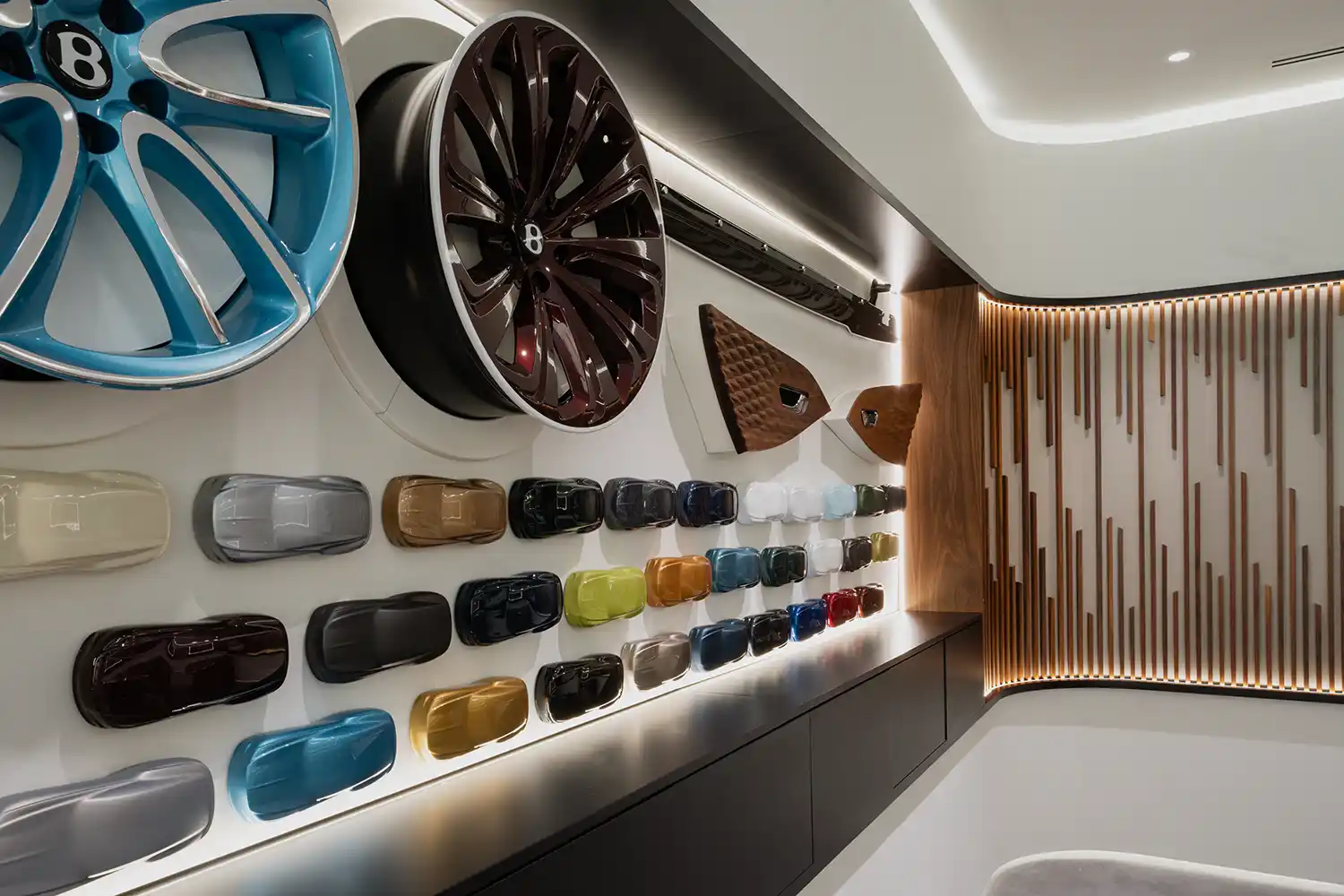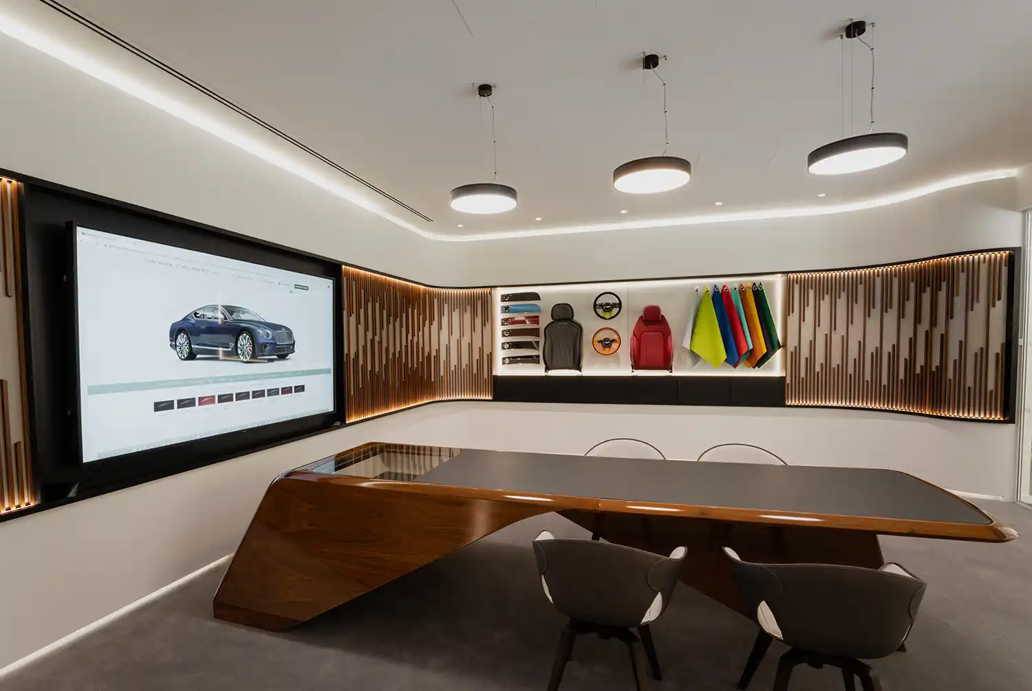 Bentley Hatfield features a showroom space that is both open and luxurious and intimate and cosseting. Away from the large glazed frontage and warmly lit floor displaying the latest range of Bentley models, sits the Mulliner Commissioning Studio. This sanctuary features high-definition screens, paint samples, leather swatches and fine wood strips as inspiration for the bespoke process of co-creating your new Bentley with Mulliner. This co-creation process is revealed to great effect with a new range of Mulliner-created models available exclusively through Bentley Hatfield, known as the de Havilland Collection.