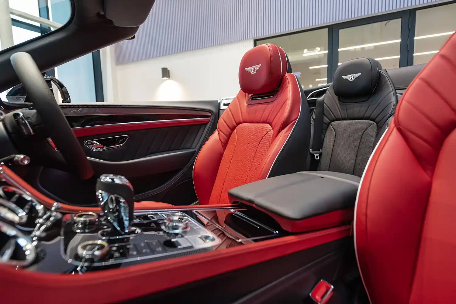 Bentley Hatfield is with an H.R. Owen multi-marque facility built on the site of the former de Havilland aircraft factory where legendary models like the Mosquito and Comet Racer were built. The bespoke ‘de Havilland Collection’ examples of the Continental GT S, GTC S, Flying Spur S and Bentayga S feature Tornado Red accents in homage to the red paint of the de Havilland Comet Racer, winner of the 1934 England-Australia air race. Inside, the subtle exterior theme is emphasised with a bespoke Mulliner colour split across the front of the cabin that pairs a Hotspur red main hide with a Beluga secondary hide, contrasted by Mulliner White piping. The fascia and door waistrails feature a split of Beluga and Cambrian grey, intersected by a chrome pinstripe.
