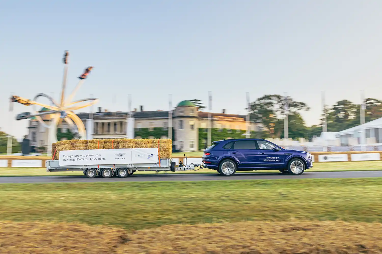 Bentley ran its six strong fleet at Goodwood using the fuel and successfully completed all 32 hill-climbs. The 750PS, W12-engined Batur fuelled with the second gen biofuel completed a 55.0 second run putting it in the top-three production cars of the weekend. Bentley’s newest flagship – the Bentayga EWB, also completed the hill climb in just 1 minute 21 seconds – impressive enough, but made even more surprising by the fact it was towing 2.5 tonnes of straw. Enough straw, that when converted to biofuel, would power the Bentayga for 1100 miles or provide fuel for all of the Bentleys for the weekend at Goodwood.