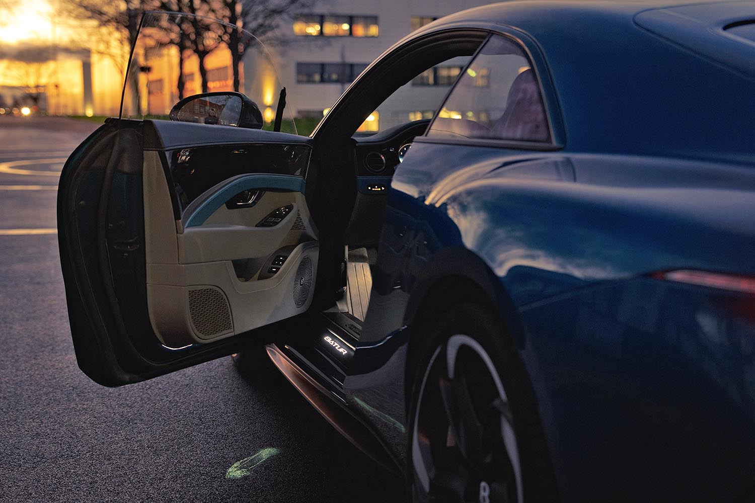 The level of personalization offered by the Bentley Mulliner Animated Welcome Lamp is extraordinary. The bespoke animation is structured in two distinct parts. It begins with an introduction sequence as the door is initially opened by the occupant. This is followed by a shorter, looped animation that projects continuously until the door is closed. The entire sequence can last up to 11 seconds, offering ample time for a detailed, curated welcome.