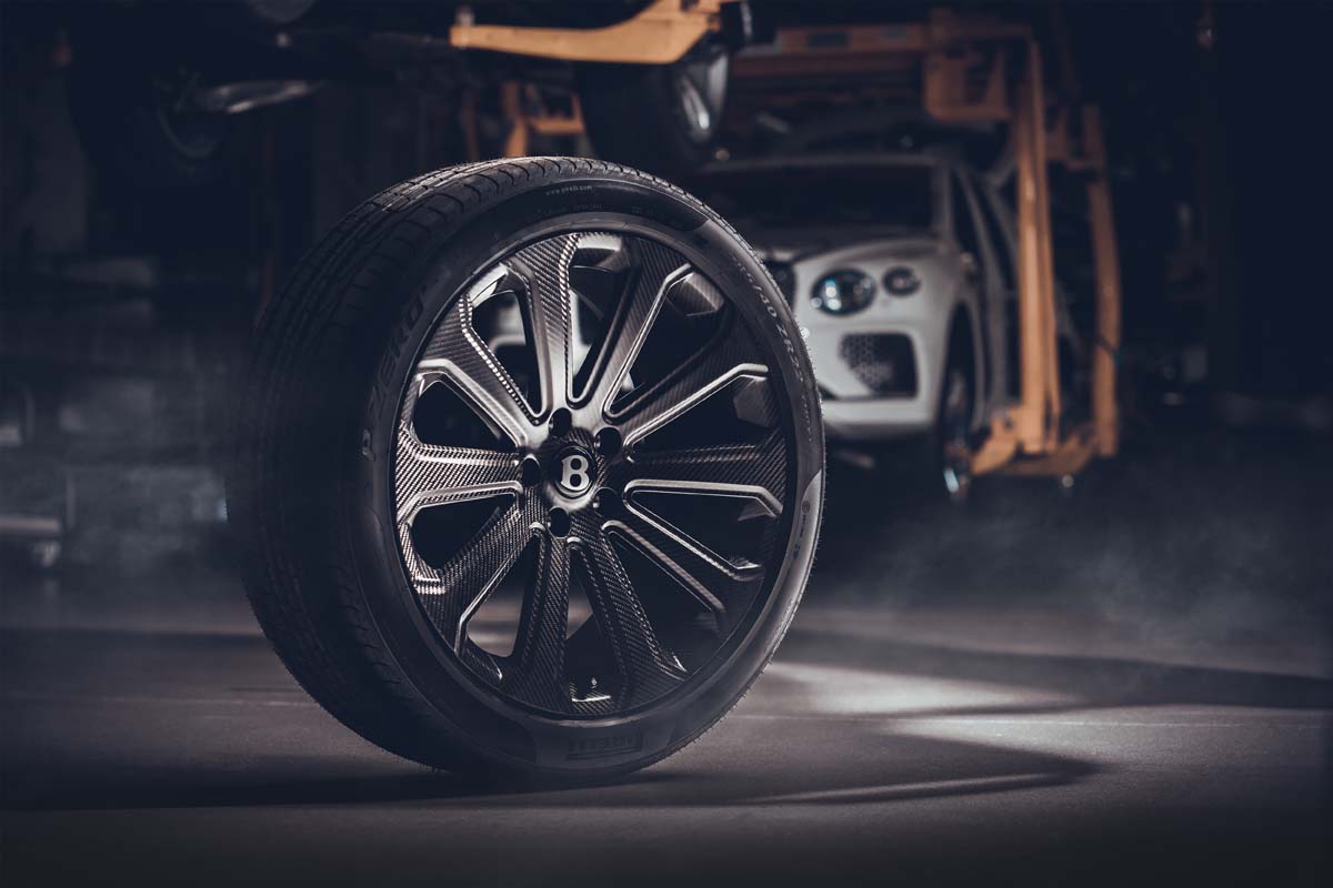 This collaboration with a world leading composites supplier underlines Mulliner’s key principle in offering Bentley’s customers new and unique features. The new 22” carbon wheel is the perfect complement to Bentley’s existing carbon fibre products, including the highly sought-after Styling Specification which adds a carbon front splitter, sill extensions and rear diffuser to the Bentayga, and the opton of high gloss carbon fibre veneer to the interior.