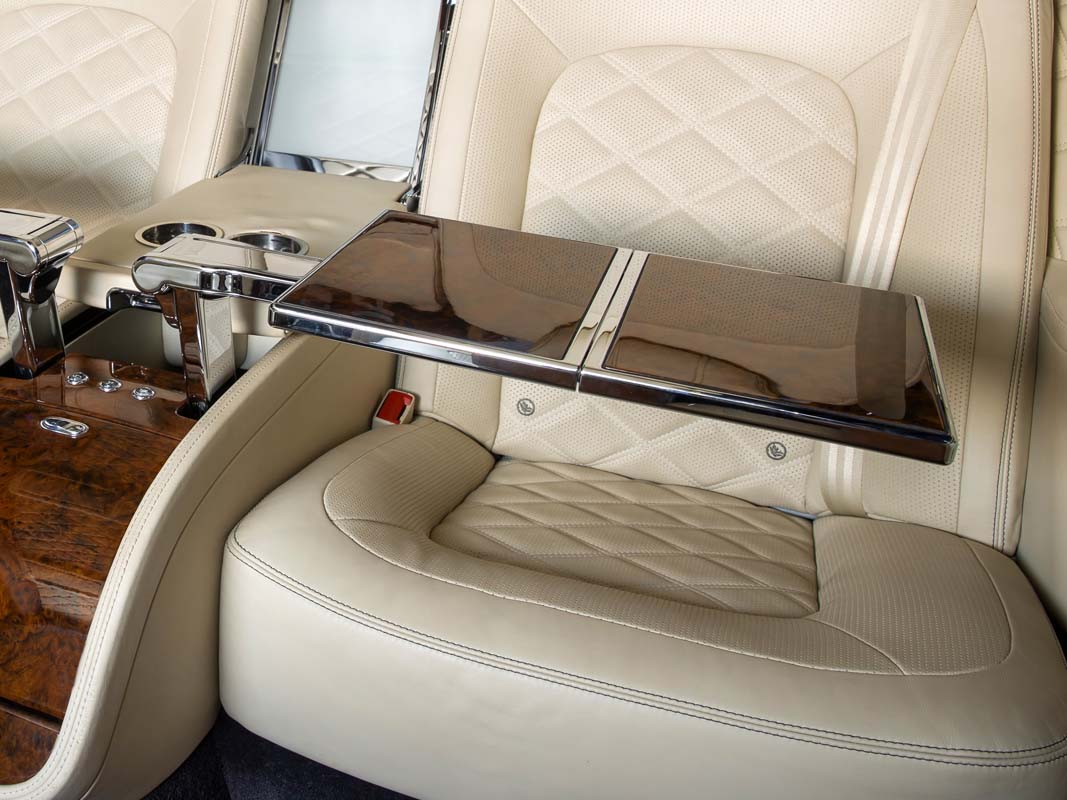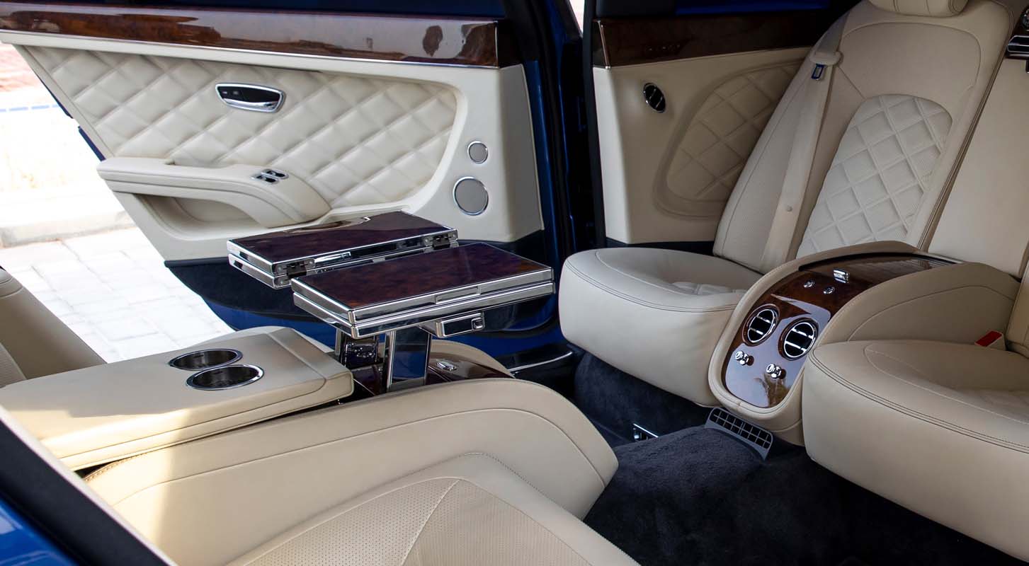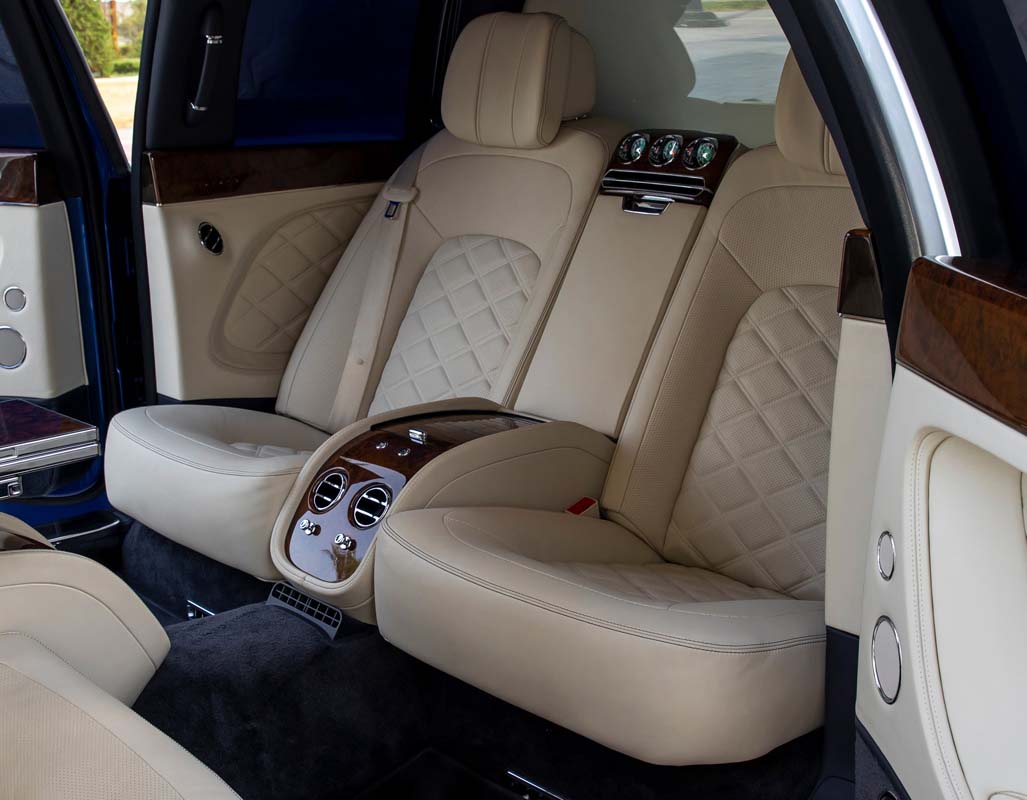 The Mulsanne Grand Limousine by Mulliner was designed around the need for four passenger seats of equal comfort. Their arrangement, which was inspired by luxury private aviation, includes two rear-facing seats, allowing passengers to talk face-to-face.