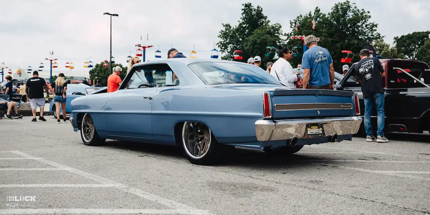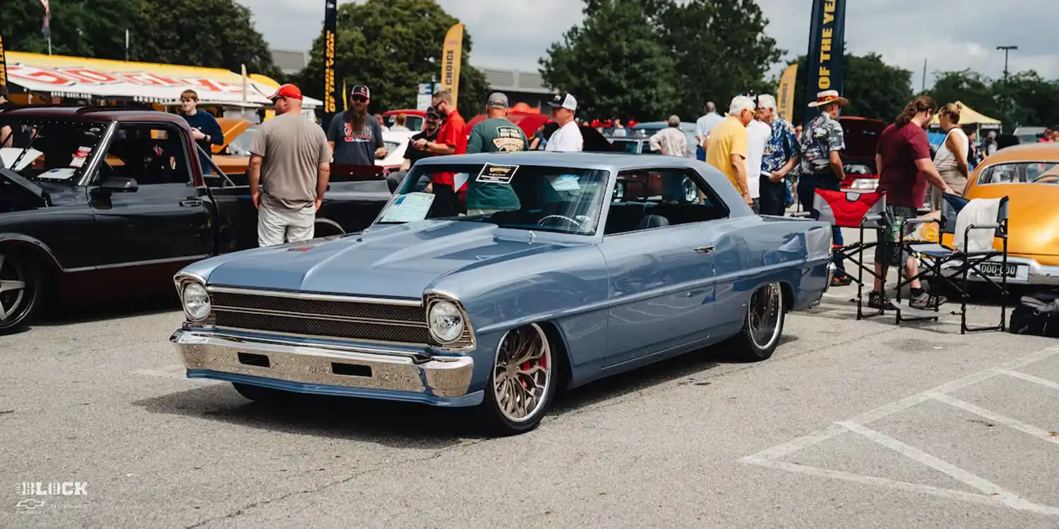 - Jim Meyer’s Glacier Ice Blue 1967 Chevrolet Nova, “Blownaway,” is a highly customized and award-winning build.