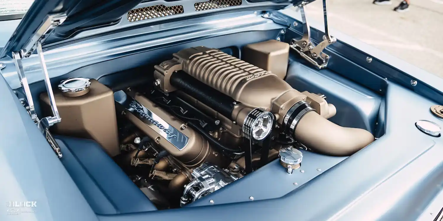 Beyond the raw power, the details of the build are equally impressive. The team at Ron Jones Garage added custom touches to the engine, including 3D printed and poured urethane boots to conceal the fuel injectors and a custom-molded throttle body designed to hide wiring and connectors. The engine is further personalized with custom valve covers featuring “Blownaway” in billet aluminum script, a name that reflects both the supercharged power and the owner’s enthusiasm.