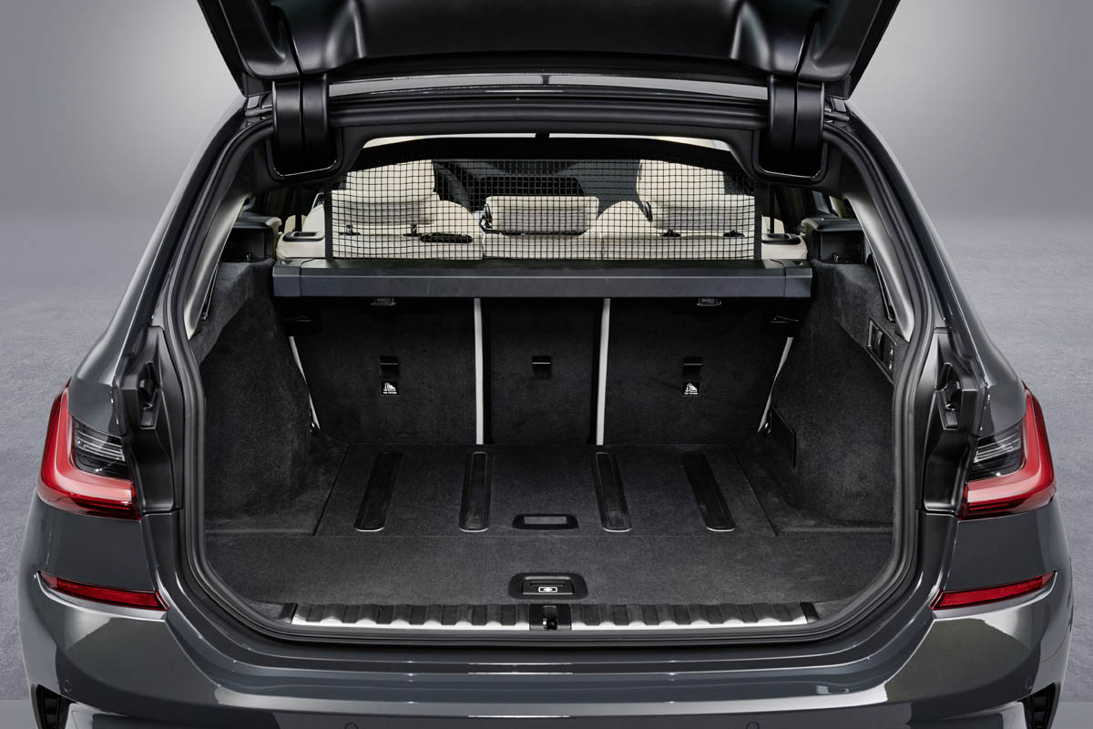 The new BMW 3-Series Touring’s boot can hold 500 litres of gear – five litres more than its predecessor – when all the seats are occupied, and directly usable primary load capacity is up by 32 litres. Boot capacity expands to offer a maximum capacity of 1,510 litres. There is the additional option of a trailer coupling that extends and retracts again electrically, likewise using a button on the new-look control panel in the boot. The maximum trailer load is 1,600 kilograms for the new BMW 320i Touring, new BMW 330i Touring, new BMW 318d Touring and new BMW 320d Touring with manual gearbox, and 1,800 kilograms for all other model variants.