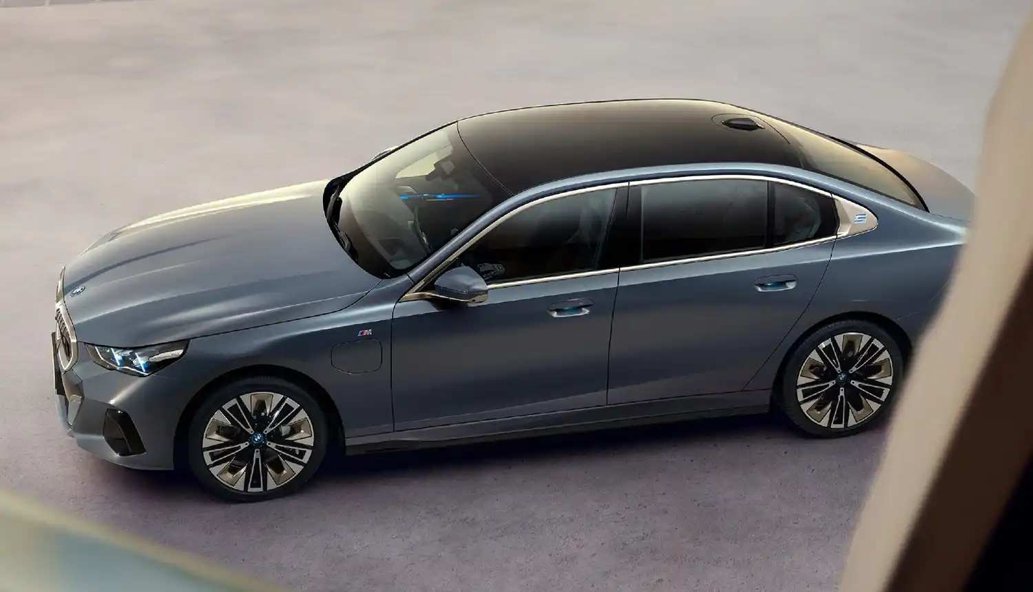 An innovative lighting design likewise contributes to the inspiring appearance of the new models. The interior lighting, the LED headlights, the contour lighting of the BMW radiator grille and the light carpet in the entrance area create a carefully coordinated, five-stage welcome and goodbye scenario. One exclusive detail of the models designed for the Chinese market is the number “5″ illuminated as standard in the area of the Hofmeister kink on the C-pillar. On the new BMW i5 its blue light pulsates discreetly and at a low frequency while the high-voltage battery is charging. With other engines the number lights up in white.