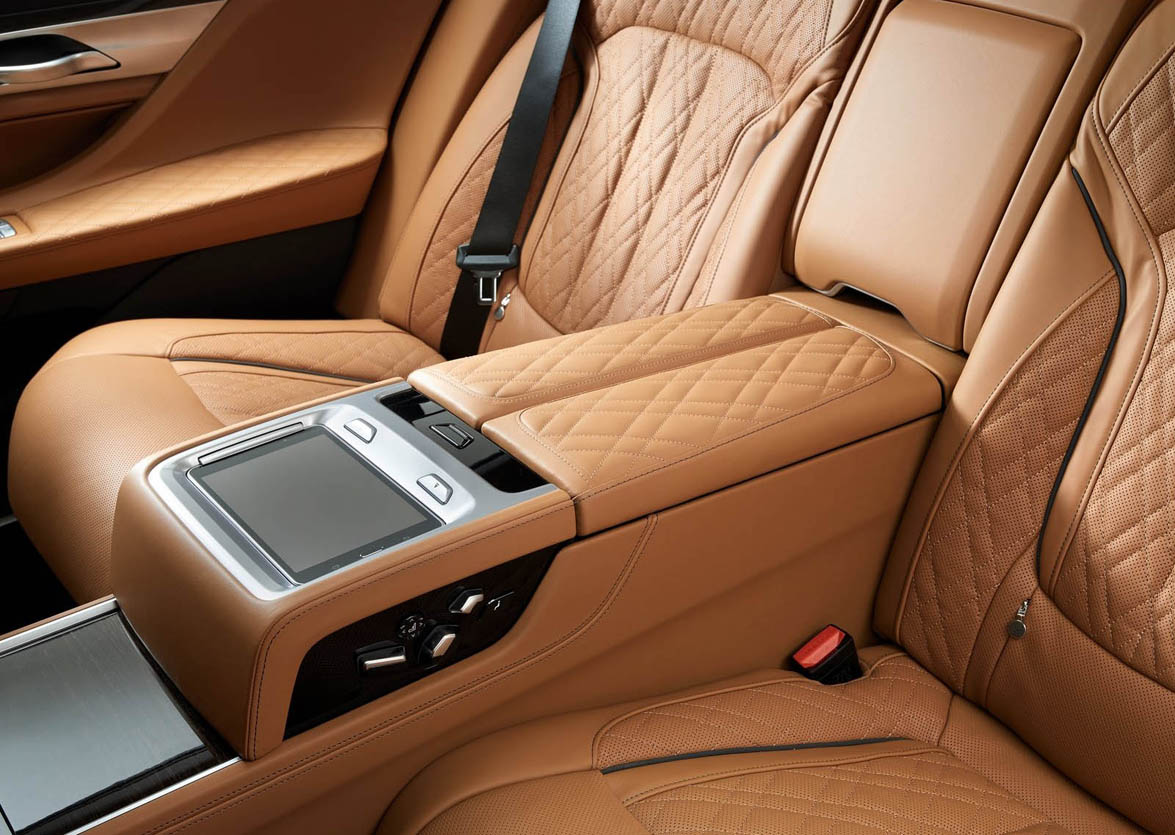 Available exclusively for the long-wheelbase versions of the new BMW 7-Series, the Executive Lounge appointments for the rear are designed to maximise the feel-good factor and passenger comfort. In addition to four-zone automatic climate control, electrically adjustable comfort seats and a massage function in the rear, the equipment package also includes active seat ventilation for all seats, along with the options Executive Lounge Seating, Executive Lounge Rear Console and Rear-seat entertainment Experience including BMW Touch Command.