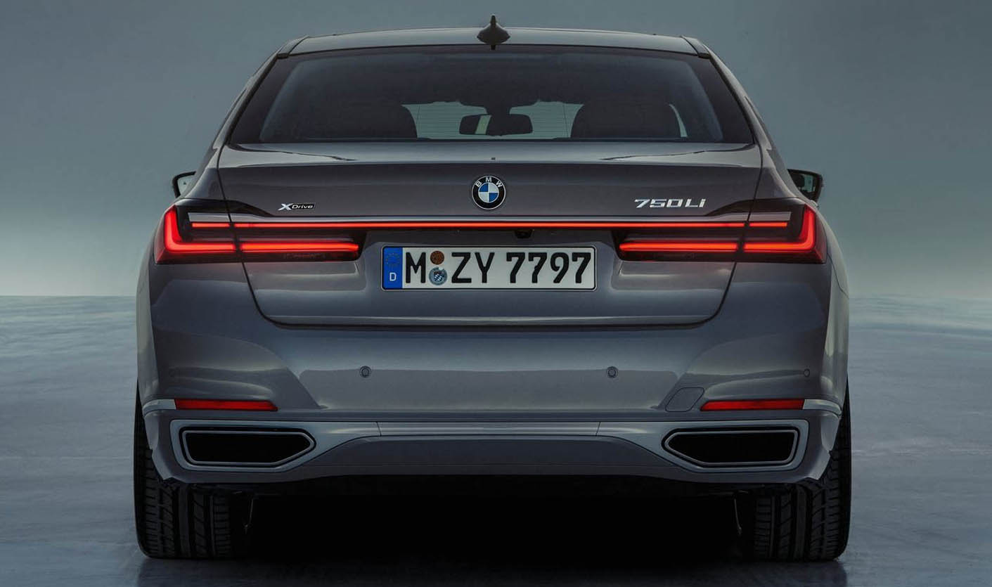 The three-dimensional rear lights of the new BMW 7-Series are around 35 millimetres slimmer than on the outgoing car and cut a sophisticated and precise figure. Their light sources are all-LED and are positioned behind red and black surfaces arranged to emphasise the L-shaped contour of the rear lights. Other new features include a sharply defined and very slim light strip (it measures just six millimetres in width) sited below the chrome bar, which extends across the full width of the tailgate and connects the rear lights with each other. The chrome bar comes in Dark Chrome when extended BMW Individual high-gloss Shadow Line is specified and Cerium Grey on the BMW M760Li xDrive. The light strip also creates a discreetly illuminated accent when the daytime driving lights are switched on and teams up with the L-shaped taillights to generate a characteristic and highly distinctive night design at the rear of the new BMW 7-Series when darkness falls.