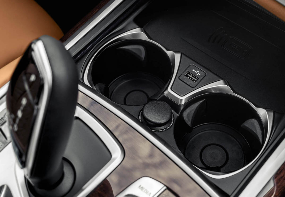 The new BMW 7-Series models are equipped as standard with a hands-free phone system including wireless charging. Previously situated under the centre console armrest, the tray for smartphones that support wireless charging is now positioned immediately in front of the cupholders. This means that the phone can always be seen by the driver while it is charging.
