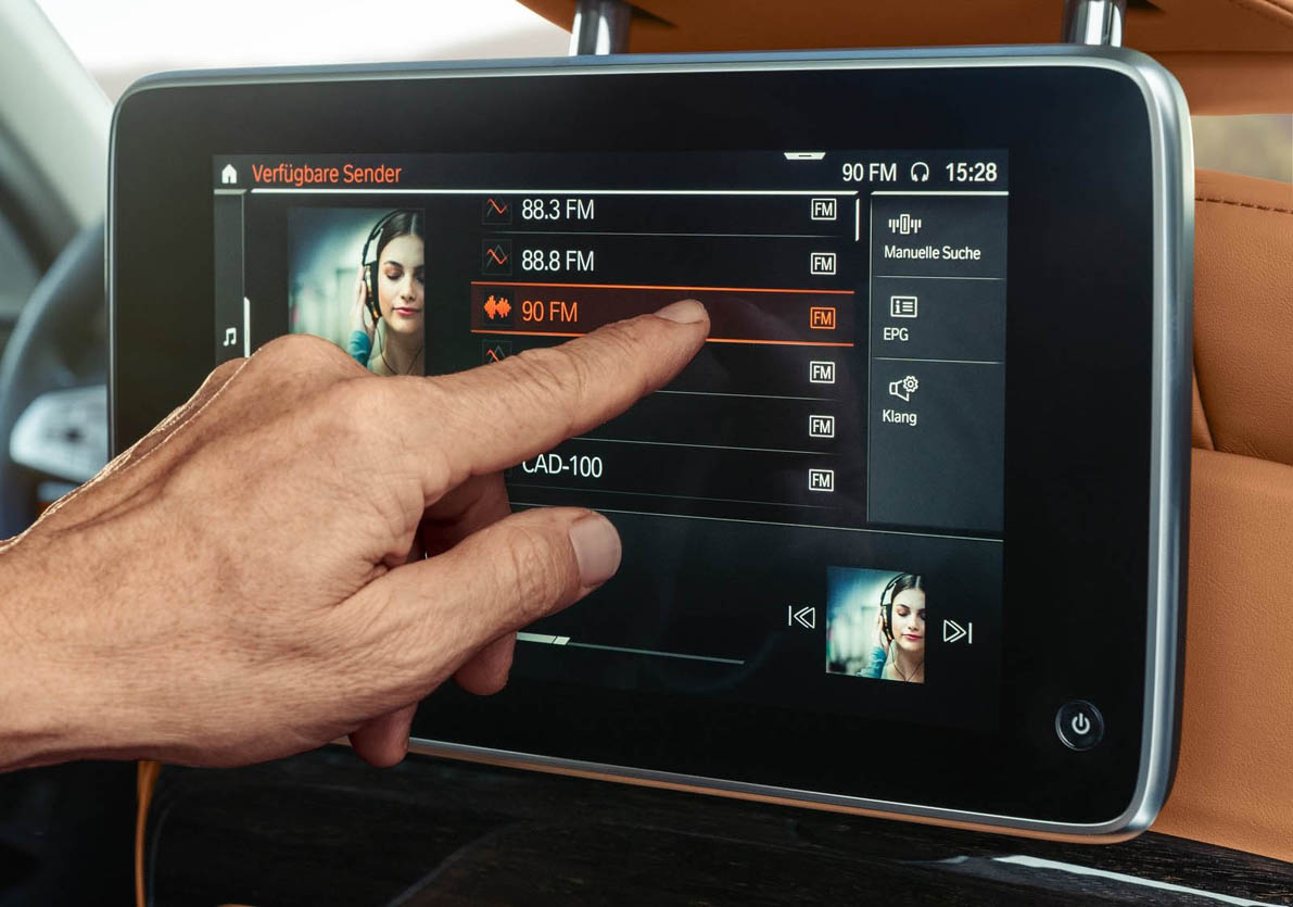 The Rear-seat entertainment system comprises two 10-inch full-HD displays complete with a Blu-ray player. The system allows users to access the entertainment, navigation and online functions of the vehicle from the rear seats. The viewing angle of the screens, which now have touchscreen functionality, can be adjusted in accordance with the rear seat passengers’ current seat position. Further improved hardware is the defining characteristic of the latest version of the BMW Touch Command unit. This removable tablet with a screen diagonal of seven inches can be used from any seat and even outside the vehicle. It lets the occupants operate comfort functions such as seat adjustment, interior lighting and climate control, as well as the infotainment, navigation and communication systems. It can also be used to play external audio and video files. The graphics and menu system of the BMW Touch Command tablet and the Rear-seat entertainment Experience displays are now aligned with the software features and functionality of BMW Operating System 7.0, which is also used for the all-digital displays of the instrument cluster and Control Display in the new BMW 7-Series to create an environment with a contemporary look and feel focused on the individual needs of the user.