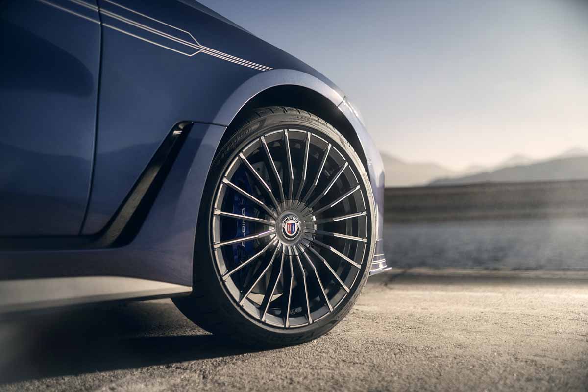 The ALPINA aerodynamic components give the BMW ALPINA B4 Gran Coupé an individualistic, expressive appearance. The new ALPINA CLASSIC 20” wheels reinterpret the typical 20-spoke wheel design that is synonymous with the brand.