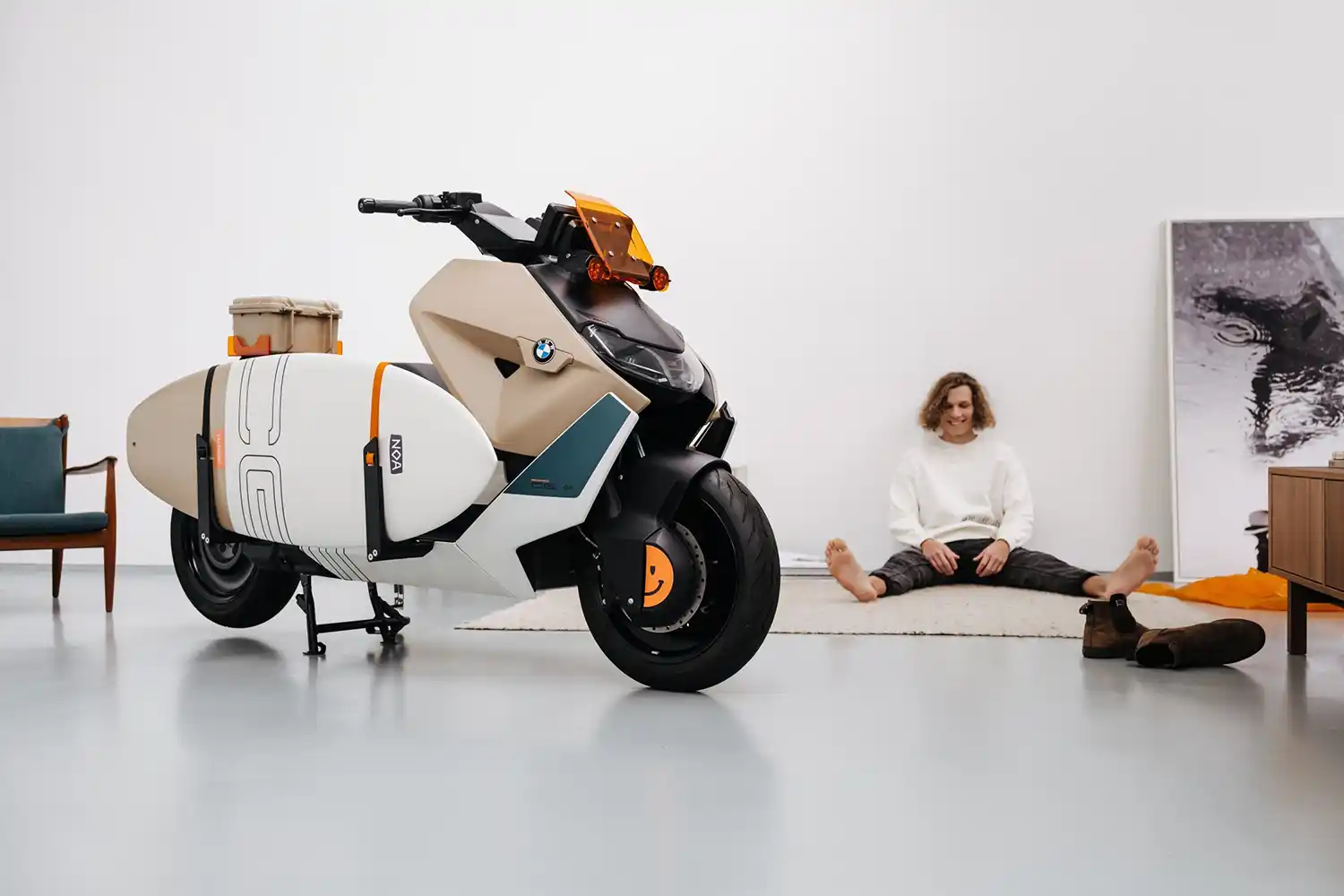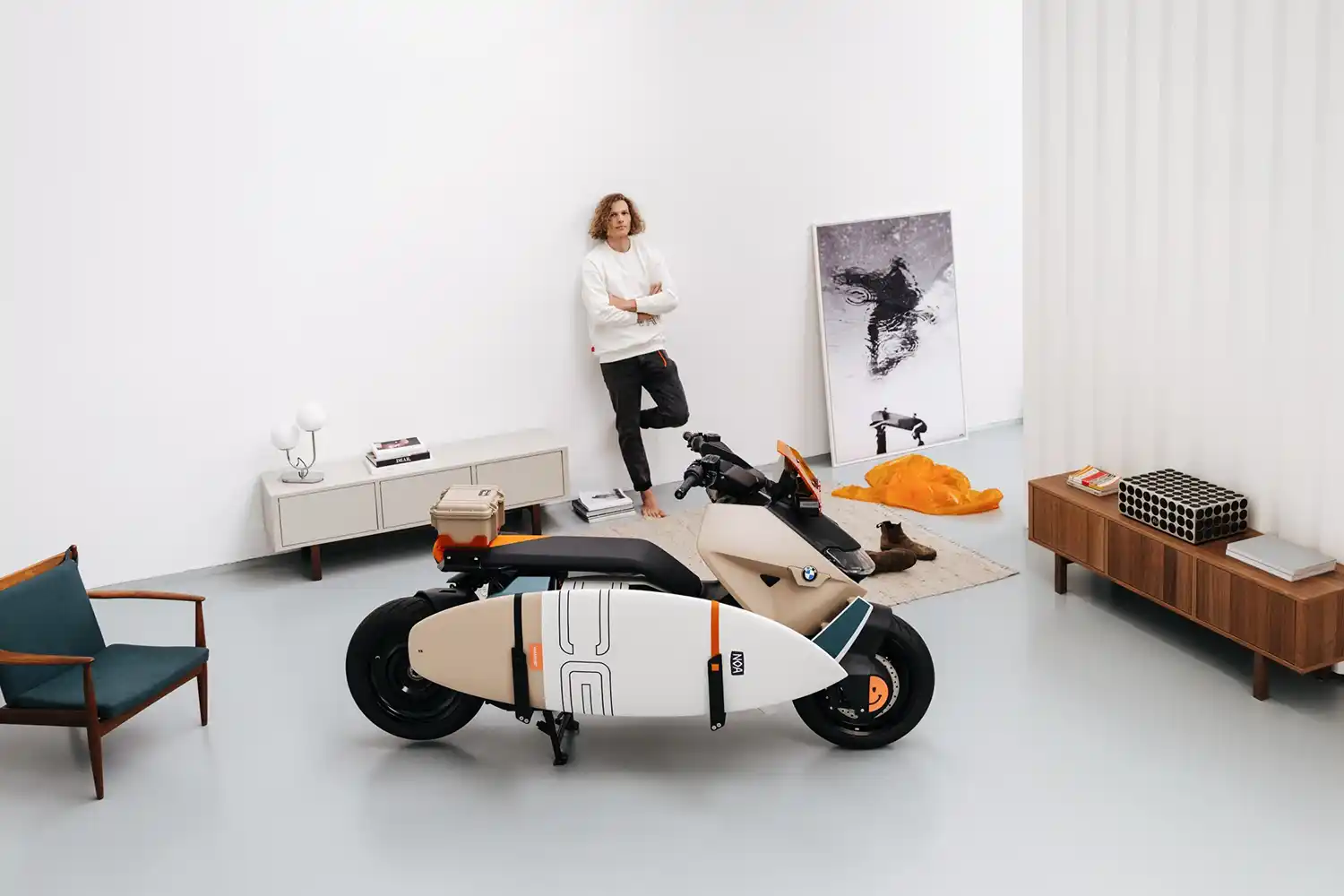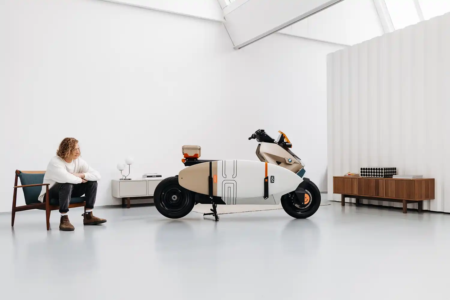 In keeping with the motto “Action meets Fashion”, the BMW CE 04 Vagabund Moto Concept was given a functional top case to supplement the standard storage space, along with a surfboard with a transport system integrated in the vehicle – whether for a trip to the sea or to the nearest lake. “The surfboard isn’t just a piece of sports equipment: it’s also a metaphor for a sustainable urban lifestyle. The BMW CE 04 Vagabund Moto Concept combines work, leisure and individual flair, demonstrating that there needs to be no contradiction between any of these areas,” concludes Oliver Balzer.