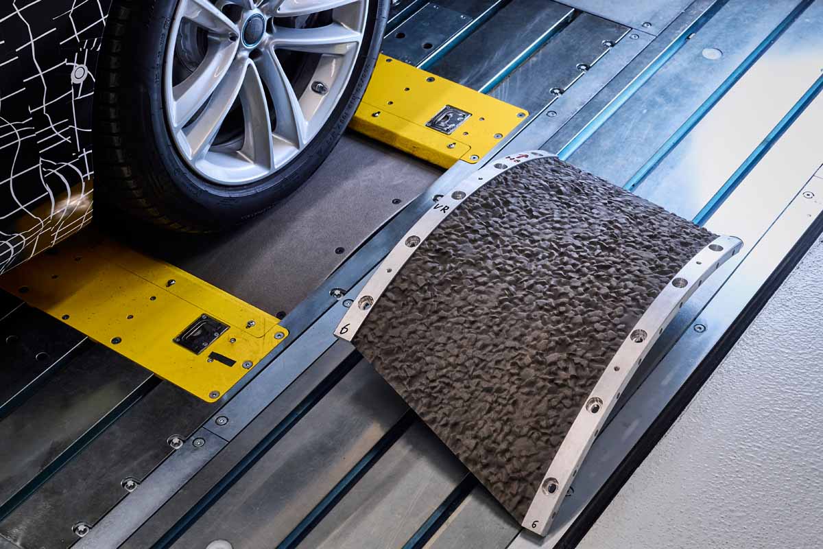 In addition to the noise and vibrations emanating from the vehicle itself, it is primarily the noise sources from the outside that can impair the experience of comfort while driving. The new acoustic simulator at FIZ North enables the noise emitted in day-to-day traffic to be simulated under laboratory conditions – this includes the sounds made at road construction sites and by passing trucks, for example. Numerous loudspeakers are used to project these sounds onto the vehicle prototypes from all directions to test the effectiveness of the interior noise insulation.