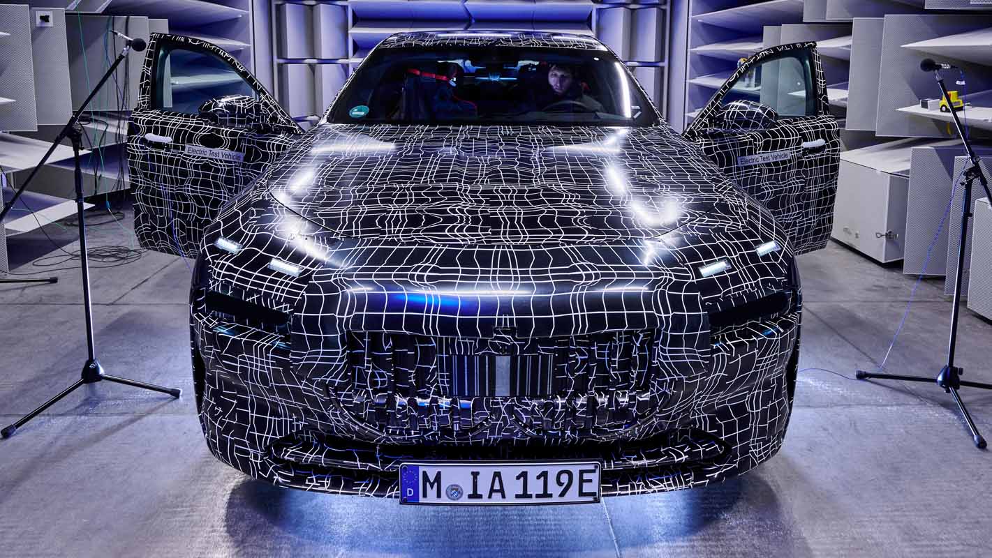 The BMW i7 (combined power consumption: 22.5 – 19.5 kWh/100 km according to WLTP; CO2 emissions: 0 g/km; forecast based on the vehicle’s development status to date) is being developed with the aim of combining hallmark driving pleasure with a level of comfort that is in a class of its own. One key factor here is the acoustic properties. The level of well-being in the interior of the purely electrically powered luxury sedan is largely determined by the degree to which disturbing noises can be kept away from the occupants. There are a variety of potential noise sources to be taken into account here, so near-production prototypes of the BMW i7 – and indeed all other model variants of the future BMW 7 Series – undergo an extensive programme as part of their acoustic testing.