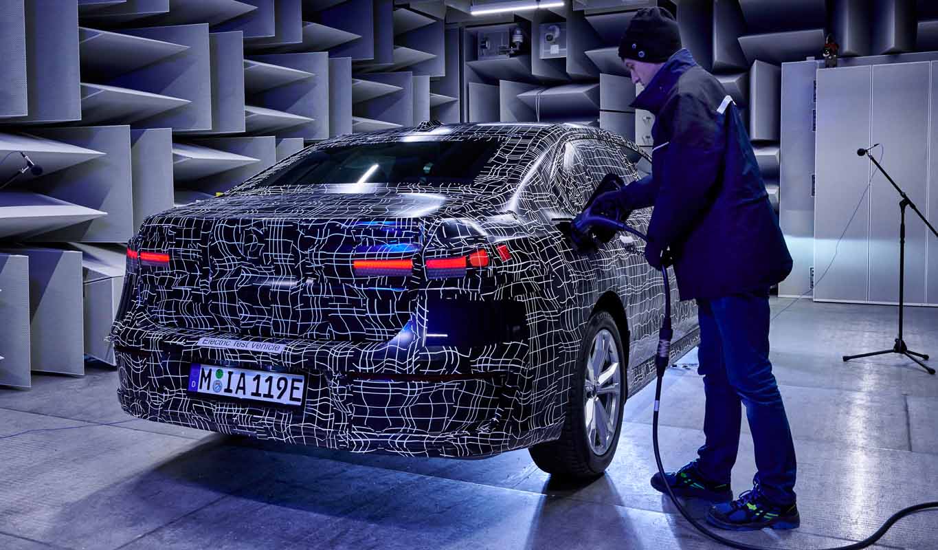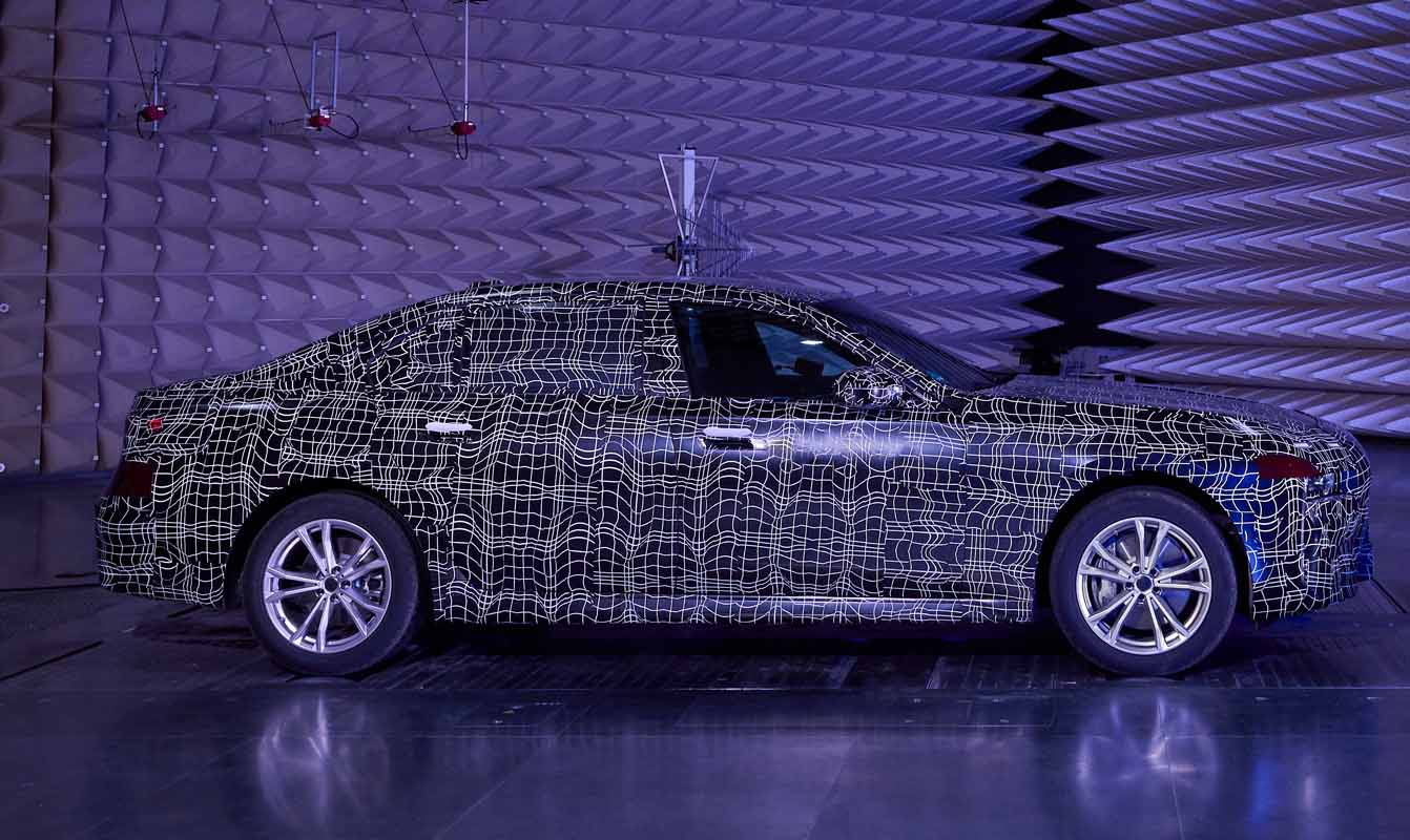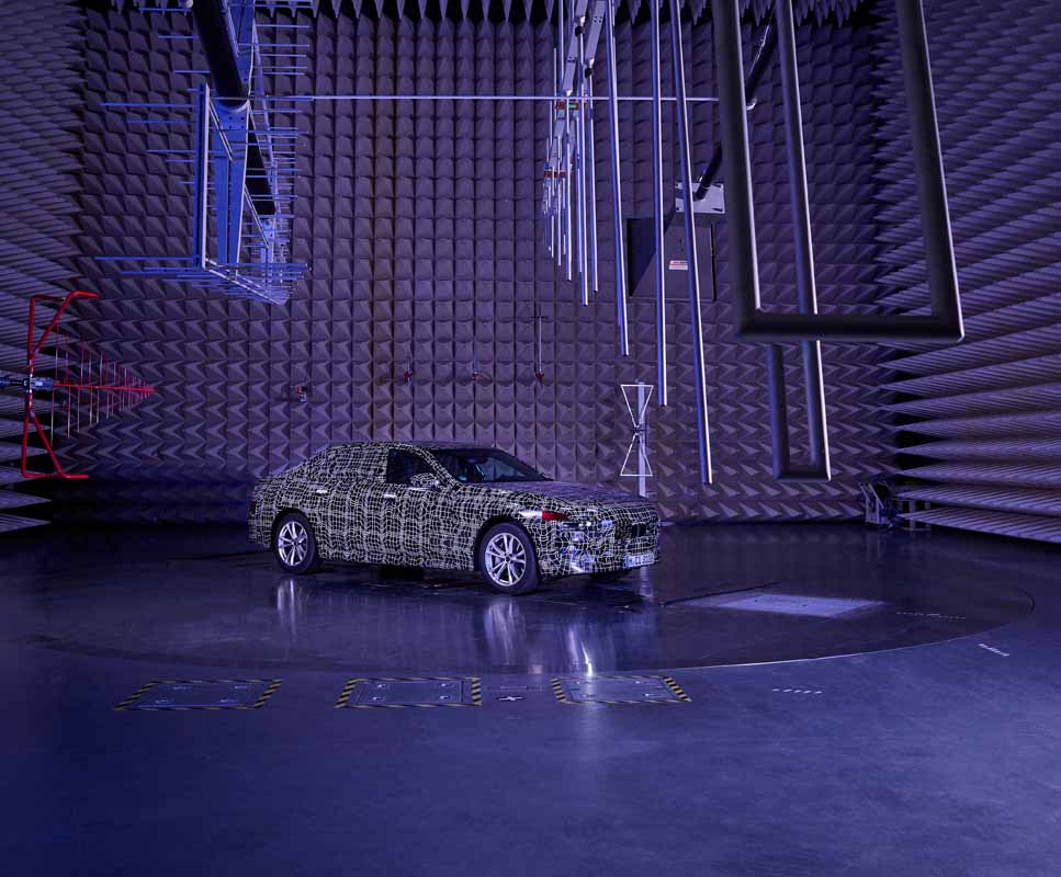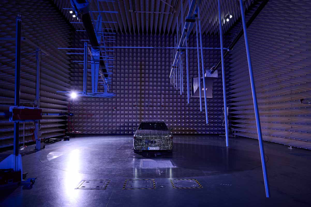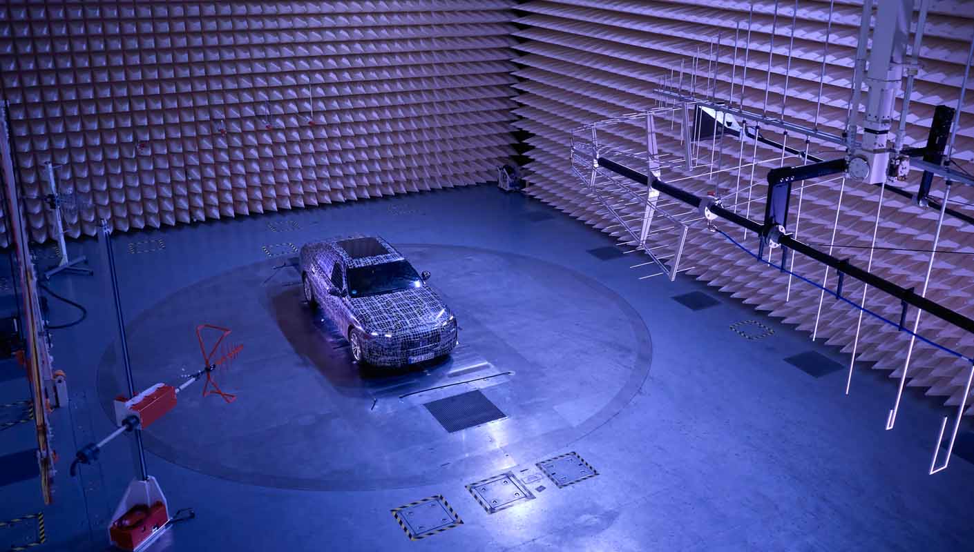 With their detailed analyses and precise optimisation, the development and test engineers seek to ensure that the new luxury sedans offer the best comfort experience ever realised in a BMW. This also includes an analysis of electromagnetic compatibility (EMC). In the so-called EMC absorber hall at the FIZ, prototypes of the new luxury sedans are exposed to powerful electromagnetic fields so as to test the susceptibility of their electrical systems to interference and see how they interact with the environment.