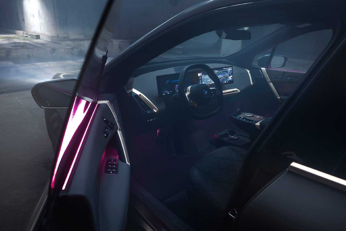The exclusive character of the BMW iX M60 is further emphasised by its exceptionally comprehensive level of standard equipment. Among other things it includes BMW Live Cockpit Professional and BMW Natural Interaction, which allows functions to be operated using speech and gestures, the Bowers & Wilkins Diamond Surround Sound System, BMW Laser Light, Comfort Access, Active Seat Ventilation for driver and front passenger and the Heat Comfort Package.