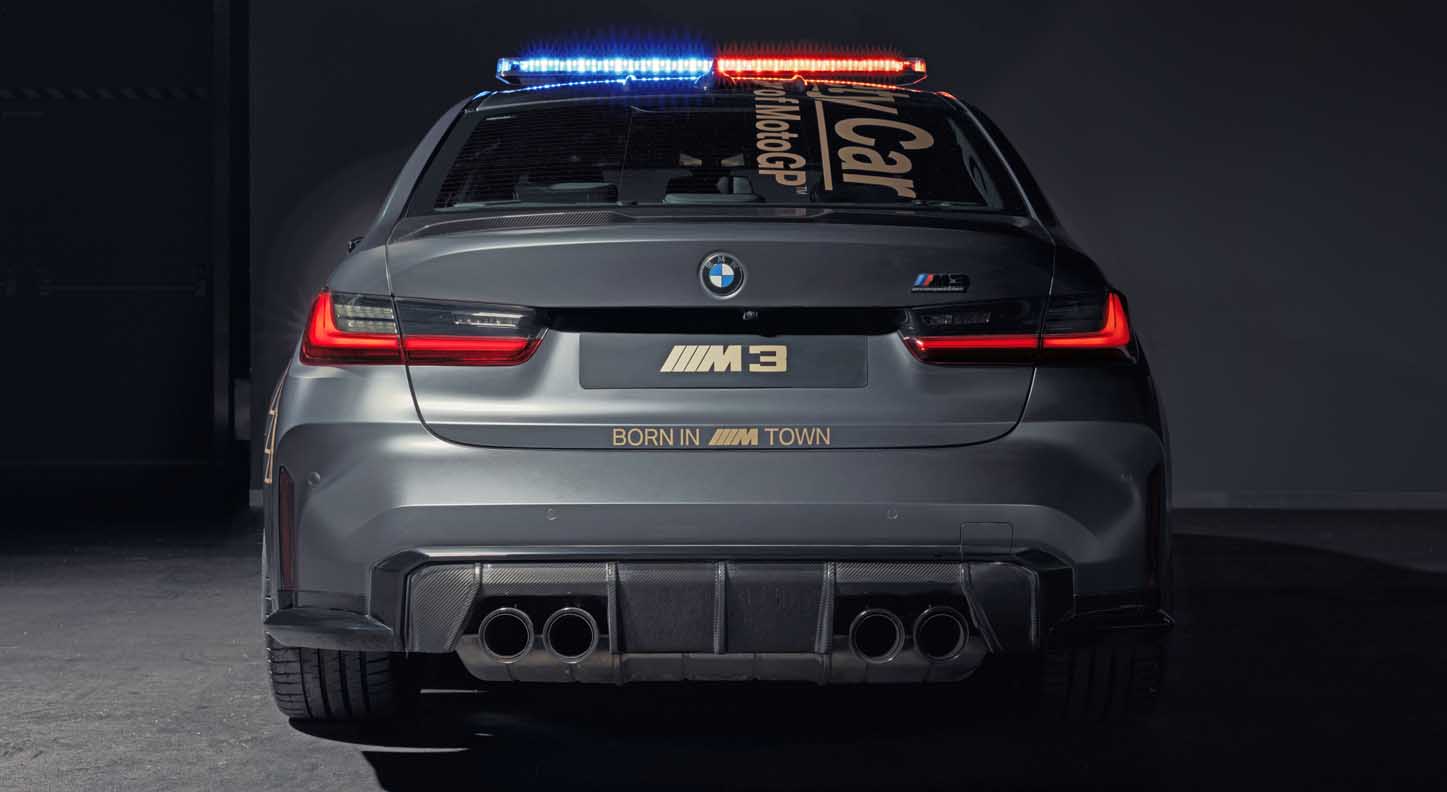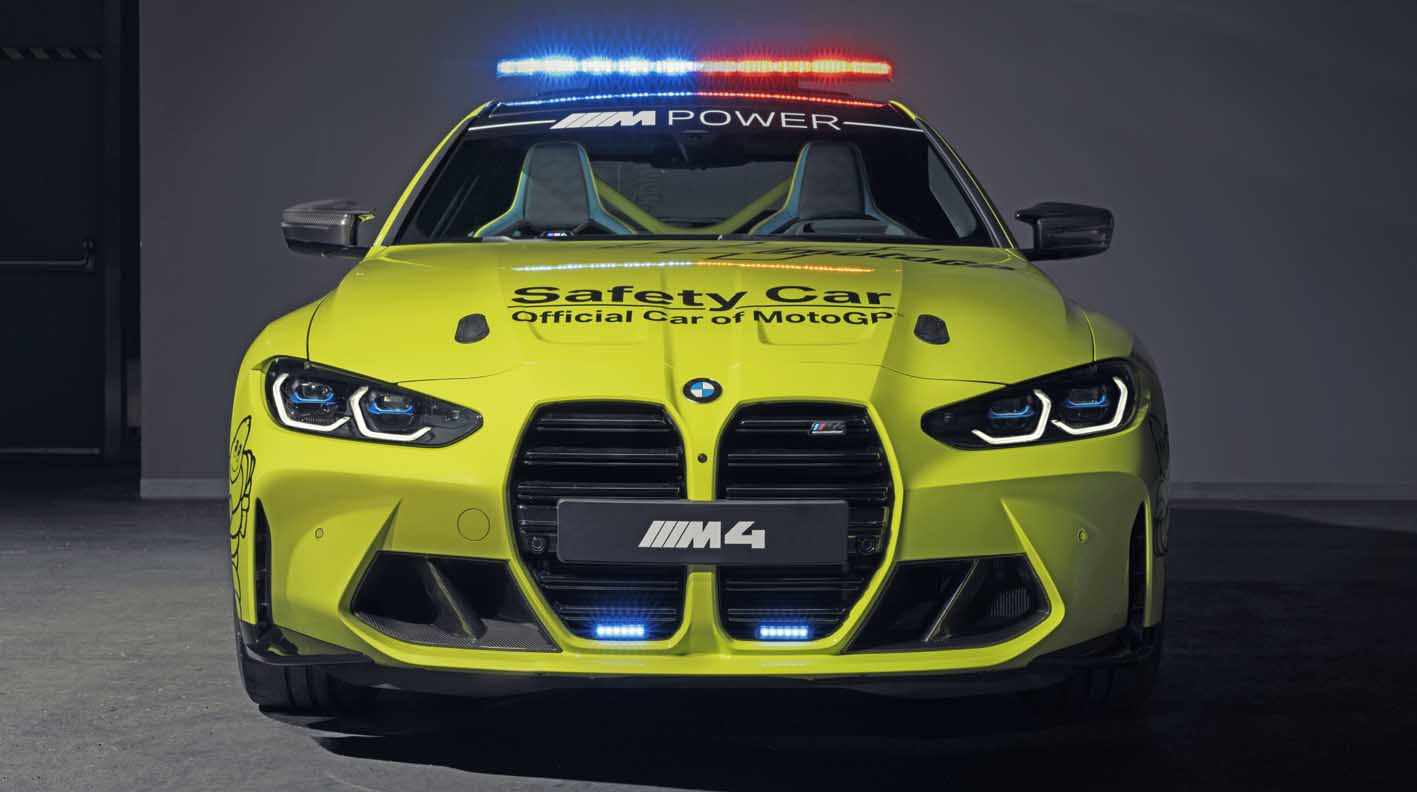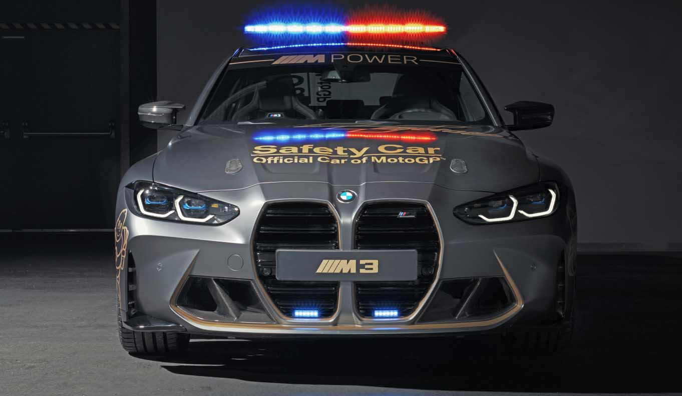 The production versions of the new safety cars have already been designed for sporty performance and perfect driving behaviour up to the limits. Therefore, only a few adjustments were required to allow their use as safety cars in MotoGP. These modifications include light bars, flashing front lights, motorsport quick-release bonnet latches and emergency power shutoffs for overseas transport. The rear seat has also been removed from the BMW M4 Competition Coupe Safety Car and a rollbar and 4-point sports harness have been installed. The BMW M3 and BMW M4 Safety Cars have modified exhaust systems.