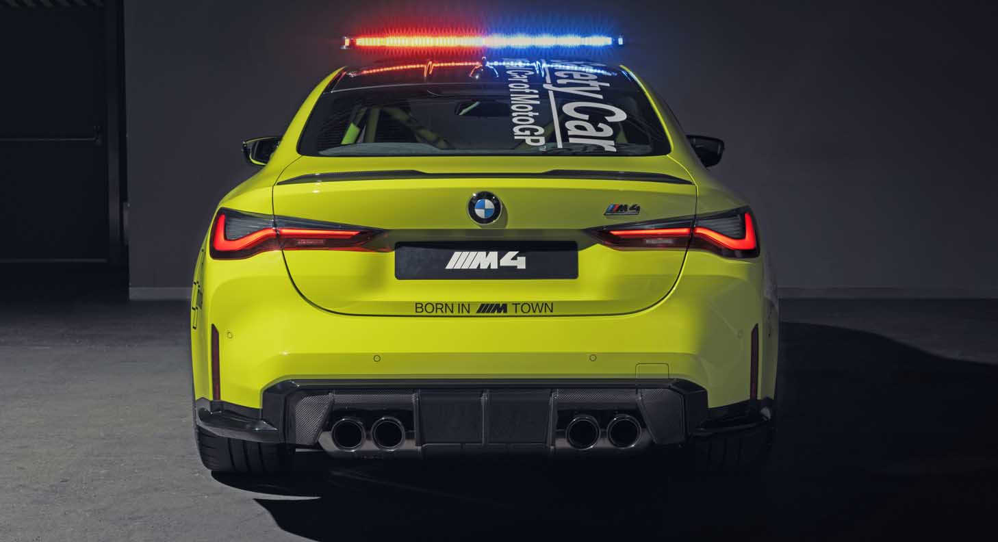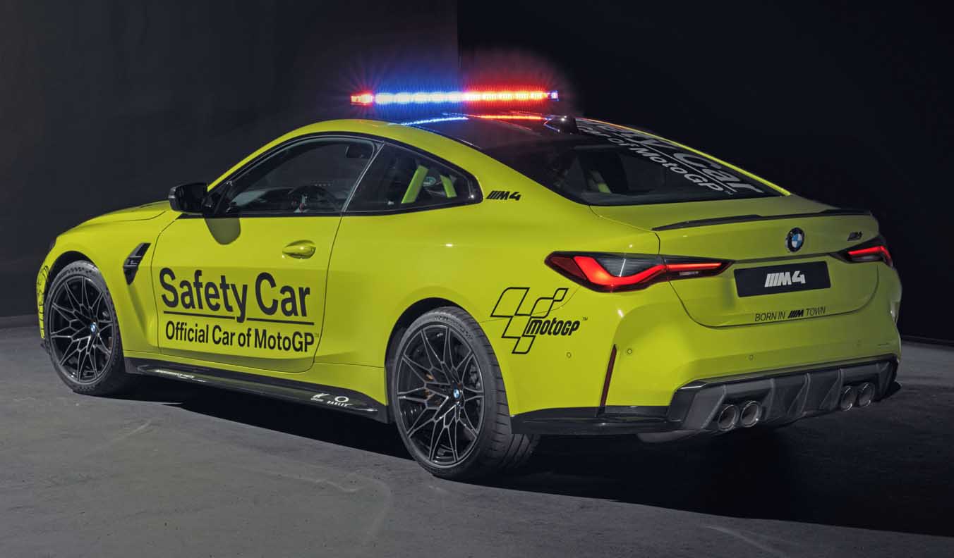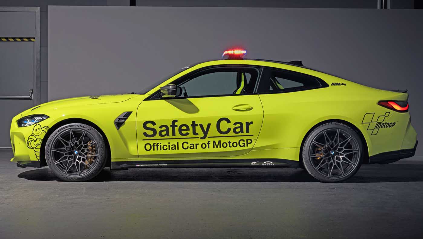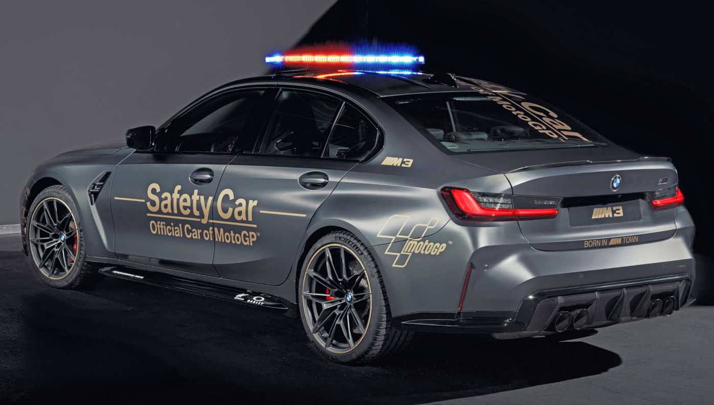 The production versions of the new safety cars have already been designed for sporty performance and perfect driving behaviour up to the limits. Therefore, only a few adjustments were required to allow their use as safety cars in MotoGP. These modifications include light bars, flashing front lights, motorsport quick-release bonnet latches and emergency power shutoffs for overseas transport. The rear seat has also been removed from the BMW M4 Competition Coupe Safety Car and a rollbar and 4-point sports harness have been installed. The BMW M3 and BMW M4 Safety Cars have modified exhaust systems.