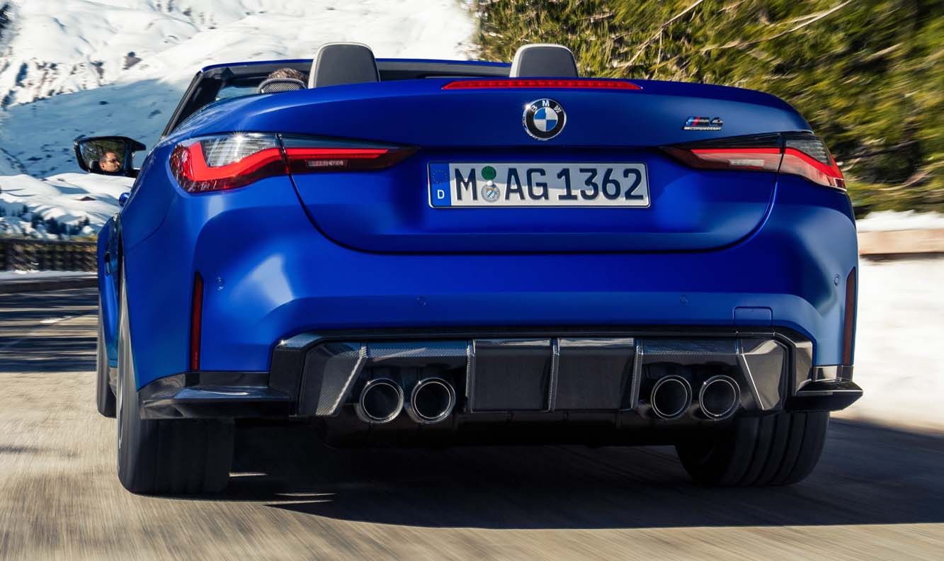 This performance skillset, combined with the enhanced traction offered by M xDrive, translates into stunning acceleration times. The new BMW M4 Competition Convertible with M xDrive takes just 3.7 seconds to power from 0 to 100 km/h (62 mph) and 13.1 seconds to reach 200 km/h (124 mph) from rest. The midrange surge from 80 to 120 km/h (50 – 75 mph) is over in 2.8 seconds (in 4th gear) or 3.7 seconds (in 5th gear). Opting for the M Driver’s Package increases the electronically limited top speed from 250 km/h (155 mph) to 280 km/h (174 mph).
