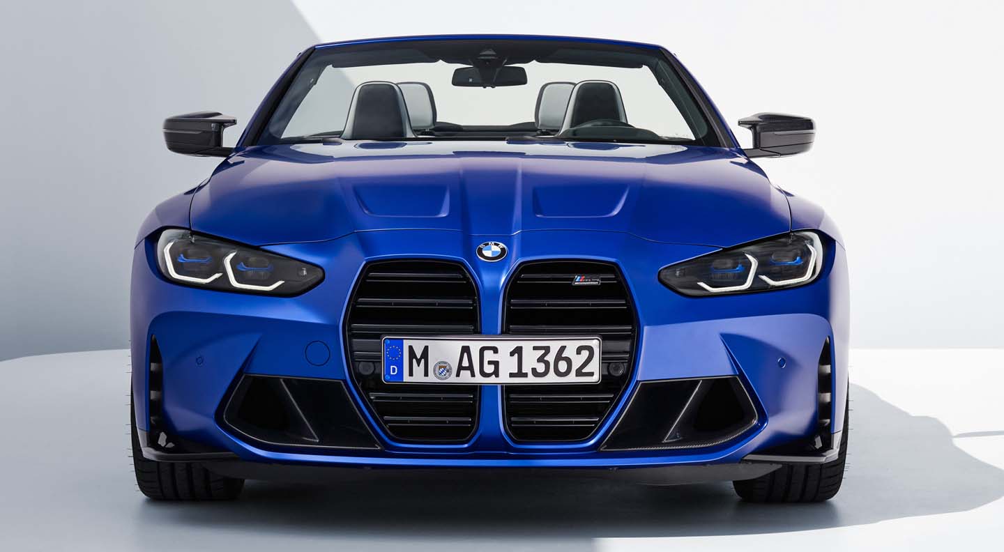 With its body stretched low along the road and its clear, reduced surfacing, the exterior of the new BMW M4 Competition Convertible with M xDrive sends out an unmistakable statement of majestic performance at work. The car’s neatly judged balance between dynamic punch and aesthetic allure is particularly noticeable when the softtop is folded away. Setting the seal on its powerful visual emotionality are M-specific design features born out of the exacting functional demands placed on a high-performance sports car.