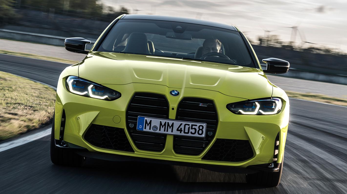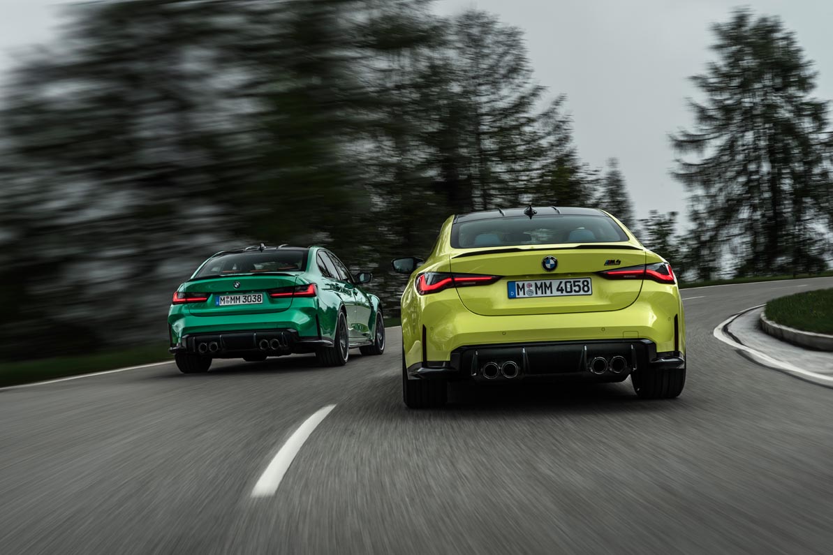 For the first time in the history of the BMW M3 and BMW M4, customers will be able to specify an all-wheel-drive system – est. from summer 2021 – as an alternative to traditional rear-wheel drive. Sending power to all four wheels enables the engine’s extraordinary power to be transformed into dynamic potency to full effect even more of the time. The M xDrive all-wheel-drive system has been modified specially for the new models and splits power as required between the front and rear wheels with renewed speed and precision. The driving experience that results is characterised by smile-inducing agility and impressively assured handling even when exploring the car’s dynamic limits. The traction gains unlocked by the variable power split significantly enhance the car’s sprinting ability. And the system’s signature M rear-wheel bias elevates directional stability and dynamics through keenly taken corners to a whole new level.