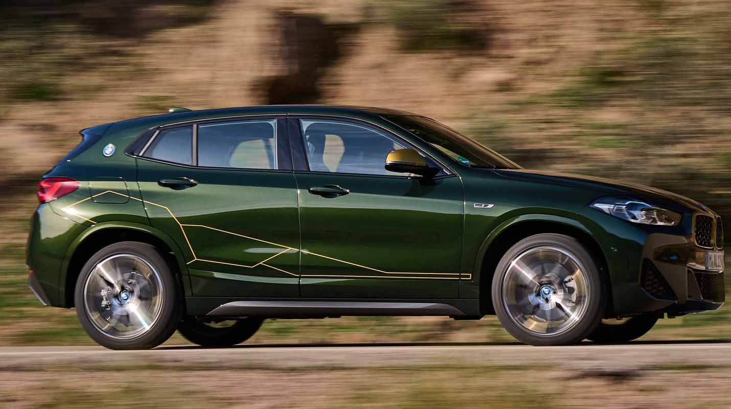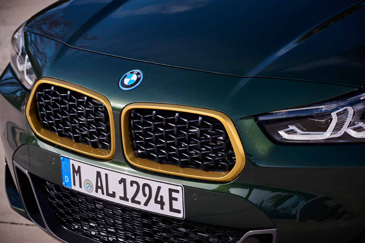 Adorning the front of the car is the M Mesh kidney grille in High-gloss Black whose mesh structure is inspired by racing cars. The styling extravagance that marks out this special-edition X2 is headlined by the use of the exclusive colour shade Galvanic Gold for the kidney grille surround and exterior mirror caps. Eye-catching inserts in Galvanic Gold also adorn the 19-inch M aerodynamic wheels of the special-edition car. 20-inch M aerodynamic wheels are available as an option, and likewise come with Galvanic Gold inserts.
