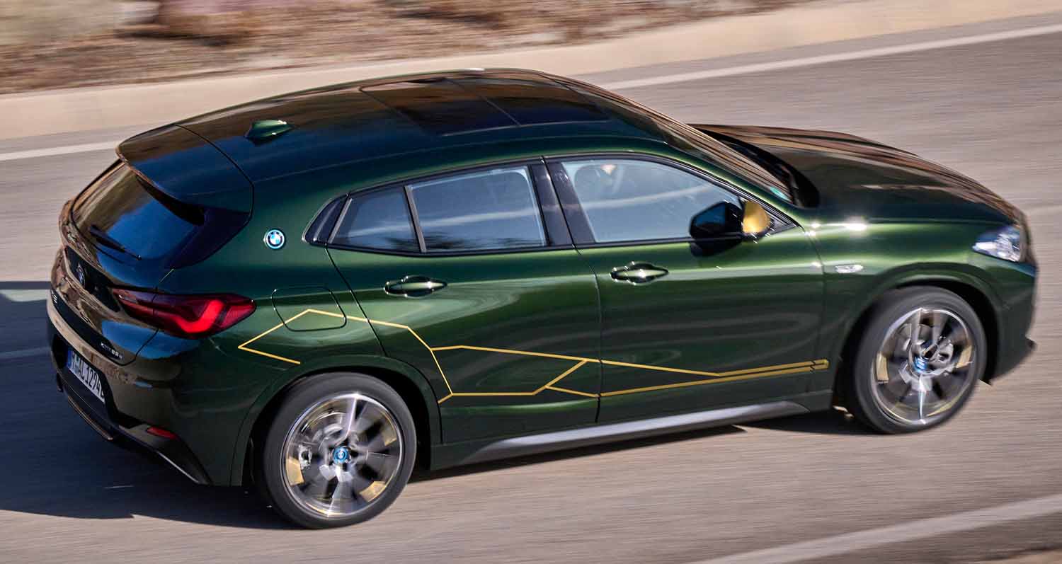 The exterior colour San Remo Green metallic is reserved exclusively for the GoldPlay Edition. This is the first time this colour shade has been available for the BMW X2. Customers can also specify their cars in Alpine White non-metallic, M Misano Blue metallic, Sapphire Black metallic, Skyscraper Grey metallic and the BMW Individual paint finishes Storm Bay metallic, Frozen Black metallic and Frozen Pure Grey metallic. The Galvanic Gold side foliation on the doors and the front and rear side panels are another exclusive addition.