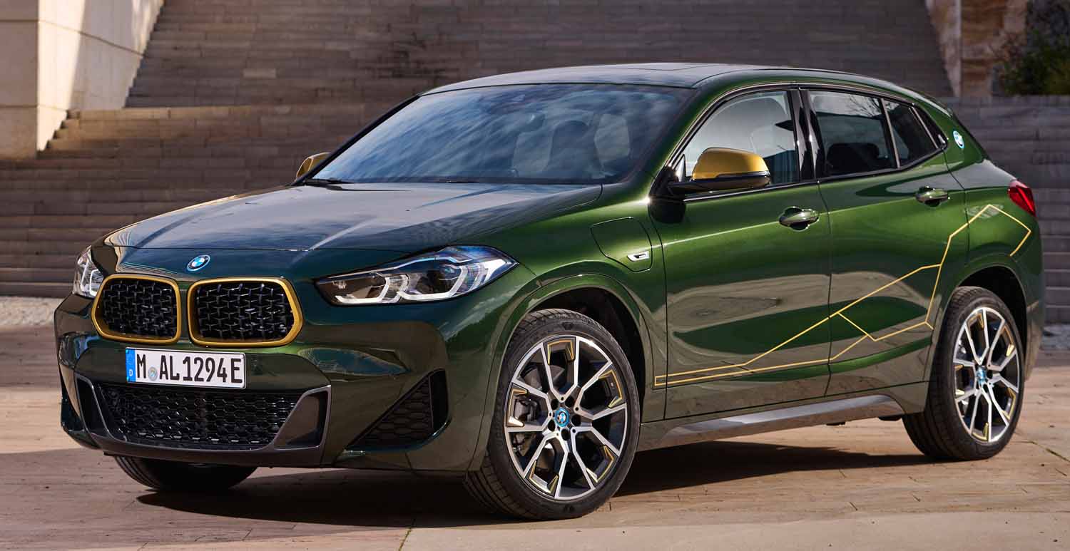 The new BMW X2 Edition GoldPlay will be offered with all the drive system variants available for the compact SAC. Among these are the plug-in hybrid BMW X2 xDrive25e (fuel consumption, combined: 1.8 – 1.7 l/100 km [156.9 – 166.2 mpg imp]; electric power consumption, combined: 15.2 – 14.9 kWh/100 km; CO2 emissions, combined: 42 – 38 g/km based on the WLTP cycle) and super-sporting BMW X2 M35i (fuel consumption, combined: 8.1 – 7.5 l/100 km [34.9 – 37.7 mpg imp]; CO2 emissions, combined: 185 – 170 g/km based on the WLTP cycle).