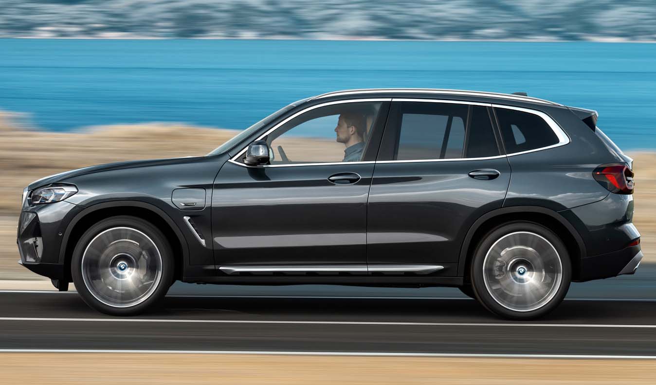 The BMW X3 xDrive30e plug-in hybrid model is reserved for the Sports Activity Vehicle. Its system consists of a 4-cylinder petrol engine combined with an electric motor whose power is transmitted to all four wheels. Their joint system output of 215 kW/292 hp can be increased by up to 30 kW/41 hp by temporary use of the electric motor’s peak output. It has a lithium-ion high-voltage battery that enables a range of up to 50 kilometres.