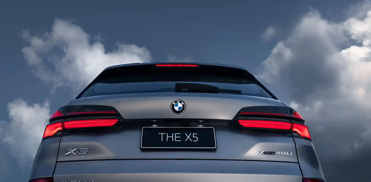 The fresh interpretation of the headlights and kidney grille – both signature BMW design elements – gives the front end greater presence while emphasising the aura of supreme assurance around the new BMW X5 xDrive30Li and BMW X5 xDrive40Li. The outline of the new headlight units is 35 millimetres narrower than before. Their daytime driving light elements pointing outwards in the shape of an arrow also perform the role of turn signal indicators. Matrix LED headlights with adaptive control and BMW Selective Beam non-dazzling high beam come as standard on the new BMW X5 xDrive40Li and are available as an option for the new BMW X5 xDrive30Li. The rear light units have also been restyled and now feature sculptural fibre-optic light guide elements for the rear and brake lights with a particularly eye-catching arrangement that creates a uniformly illuminated X motif.