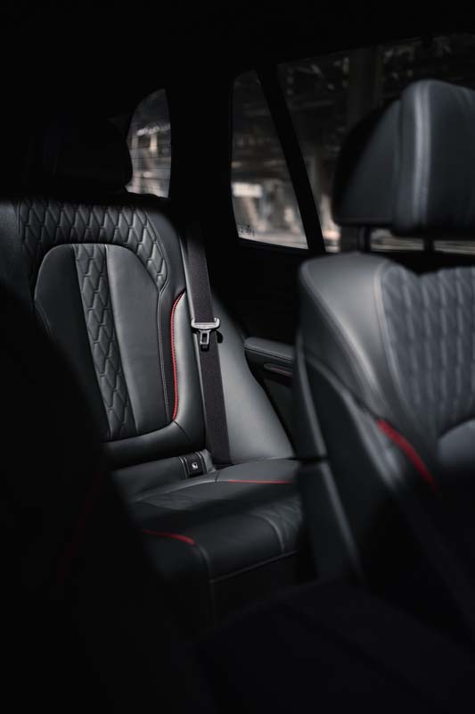 Driver and front seat passenger travel in comfort seats offering a multitude of adjustment options. The BMW Individual full leather trim Merino Black is additionally enhanced by edition-specific red contrast stitching for both the driver’s seat and front passenger seat. Inside the BMW X5 Black Vermilion, the red accents are also to be found on the rear seats. Likewise, the edging on both the front and rear floor mats is finished in red. Sun-protective glass with more deeply tinted rear windows beyond the B-pillar enhances passenger privacy whilst blending in harmoniously with the sporty and dynamic exterior design.