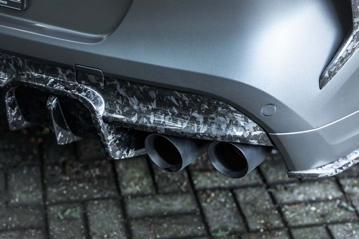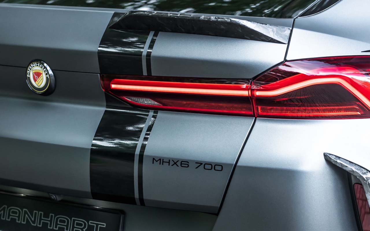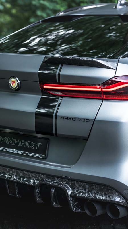 The muscular appearance of the MHX6 700 WB is no empty promise! Parallel to the bodybuilding, Manhart increased the power of the 4.4-litre biturbo V8 engine from the factory’s 625 hp and 750 Nm, to 730 hp and 900 Nm. For this purpose, either an MHtronik auxiliary control unit is used, or an ECU remapping is carried out. The prospective MHX6 700 WB customer is also spoilt for choice as to whether he wants the four 100-millimetre tailpipes of the MANHART stainless steel exhaust system with valve function with ceramic-coated or carbon-coated tailpipes. Optional (without TÜV, for export only) are MANHART Race downpipes without catalytic converters as well as OPF-Delete replacement pipes and OPF/GPF-Deleter.