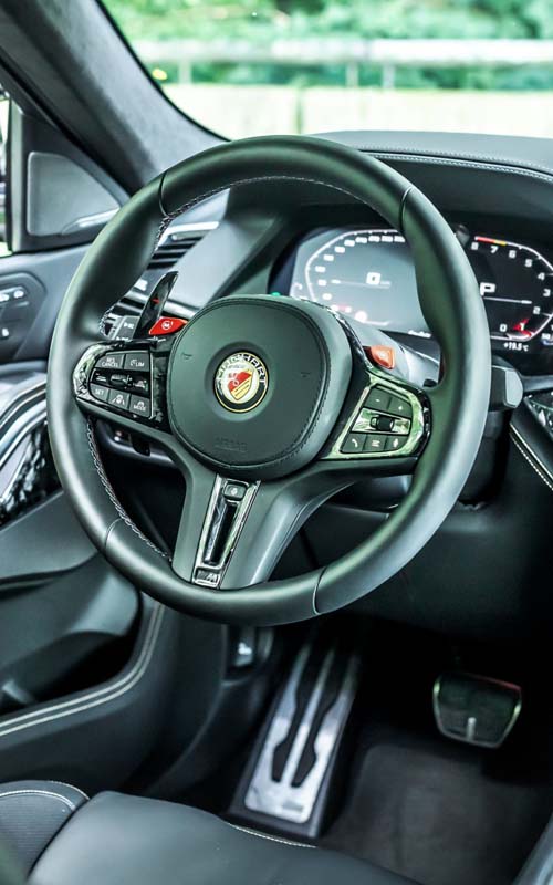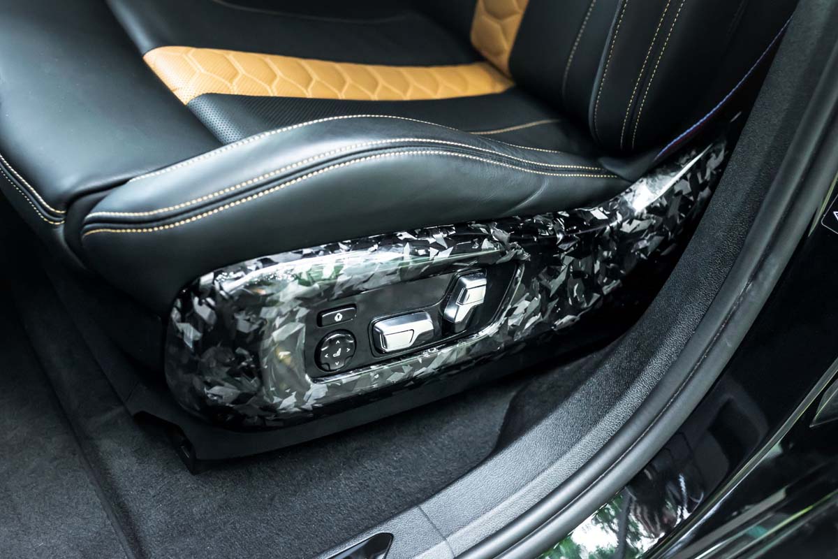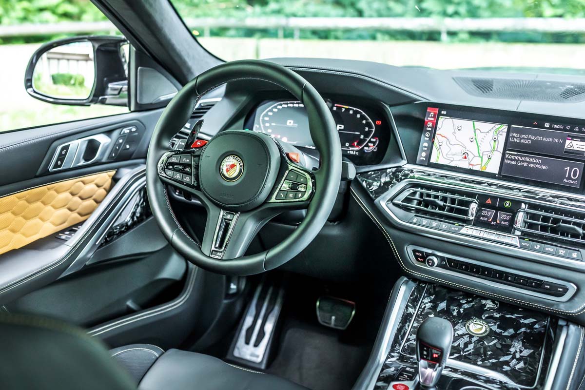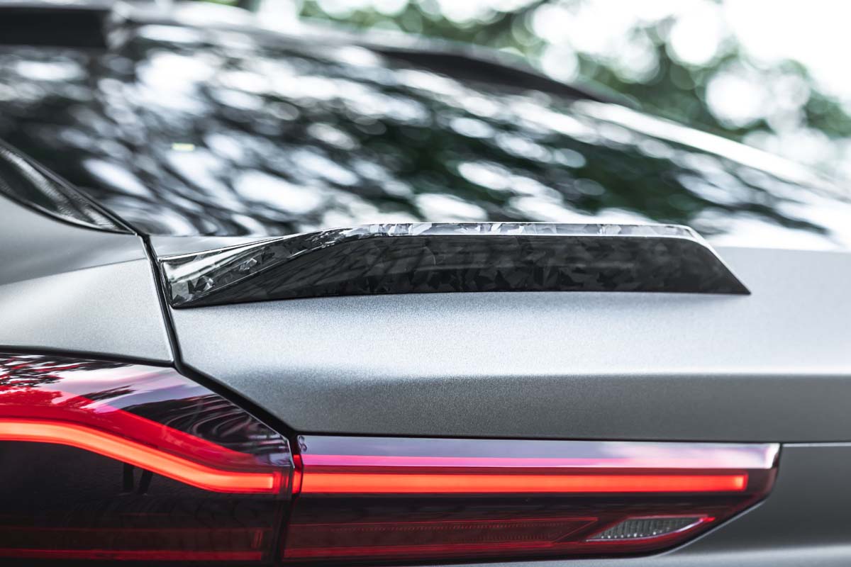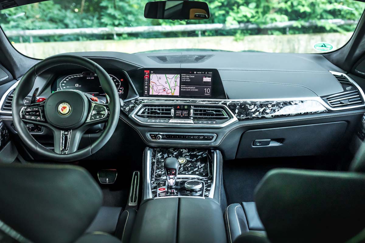 In keeping with the exterior styling, Manhart also continued the extravagantly exclusive Forged Carbon refinement in the passenger compartment: here a twelve-piece Forged Carbon interior kit sets shimmering accents. The irregular, short-fibre high-tech fabric adorns the dashboard, centre console and door panels as well as the spokes and gearshift paddles of the M sports steering wheel. Forged Carbon is also used on a large scale on the two-piece backrest shells and the console trim of the sports seats.