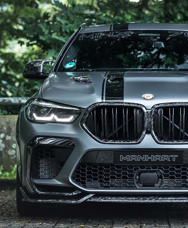 There is no doubt about it, the BMW X6 M Competition is already one of the most impressive SUVs to be seen on German roads as standard: With a length of 4.94 metres, a width of 2.02 metres, a height of 1.69 metres and a combat weight of just under 2.4 tonnes, the 625 hp / 750 Nm F96 belongs to the absolute top class of power SUV coupé. Manhart however sent the X6 M Competition to the gym again, where it visibly and noticeably trained its muscles.