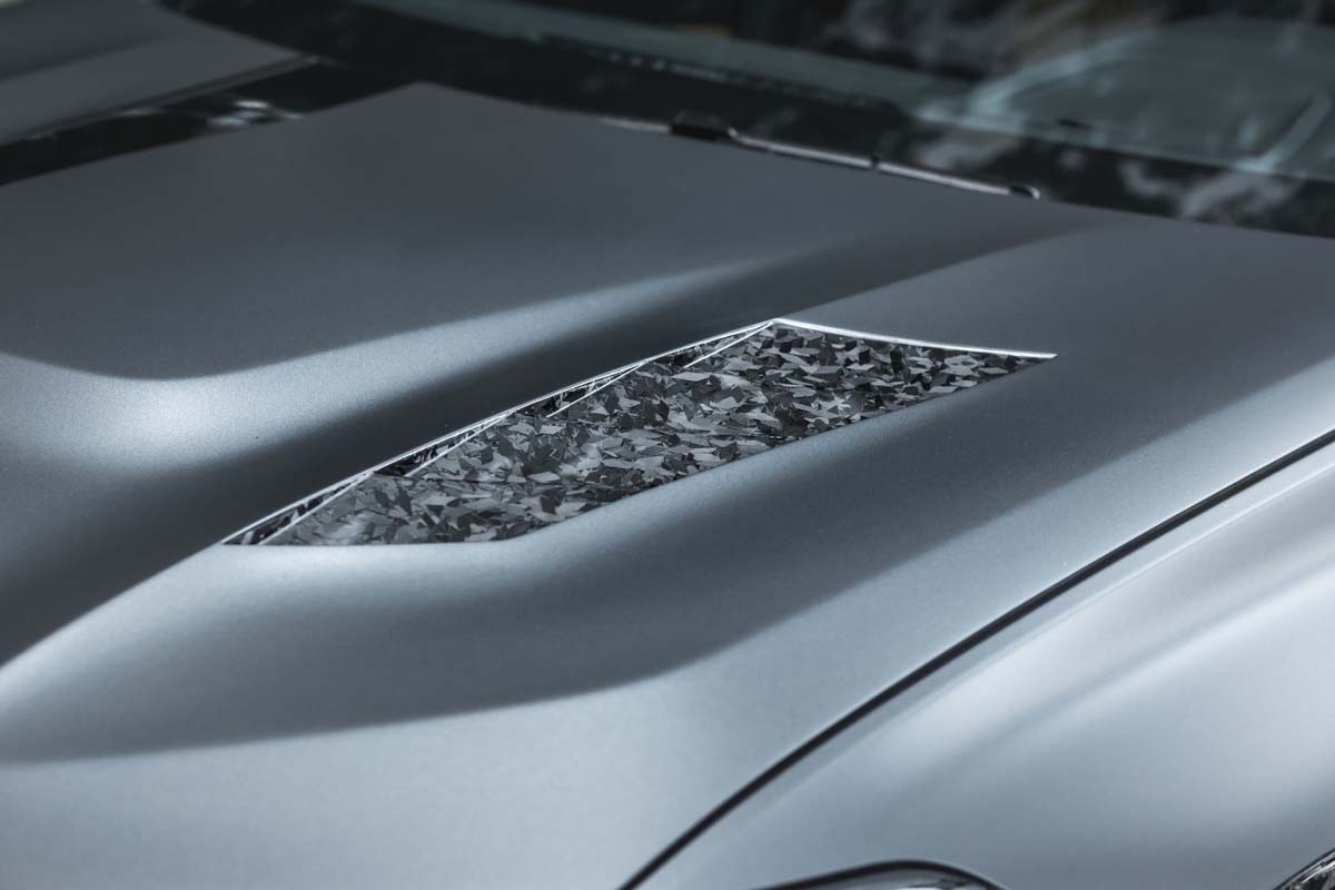 The even broader shoulders and taut muscles with which the heavyweight athlete, henceforth known as the MANHART MHX6 700 WB, are unmistakable: WB in this case stands for widebody and announces a 24-piece widebody body kit made of artistic forged carbon, with a fibre structure whose irregularity is almost reminiscent of polished marble or granite. This includes a front spoiler, radiator grille, two-part rear spoiler, rear diffuser, side skirts, multi-part wing extensions, exterior mirror housings and other Forged Carbon parts. In addition, Manhart combined a bonnet, also made of Forged Carbon on the MHX6 700 WB project car, which displays its fibre structure on clear-coated air vents. And to stay with the “carbon”: The rest of the body is wrapped in a “Matte Charcoal Metallic” full wrap with gloss black contrasting MANHART decals.