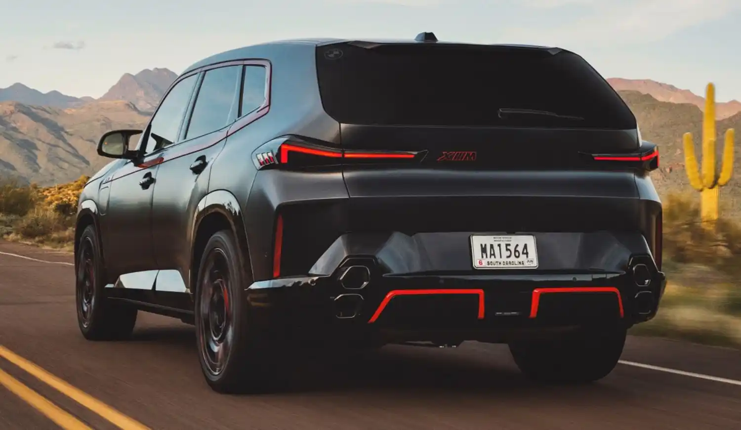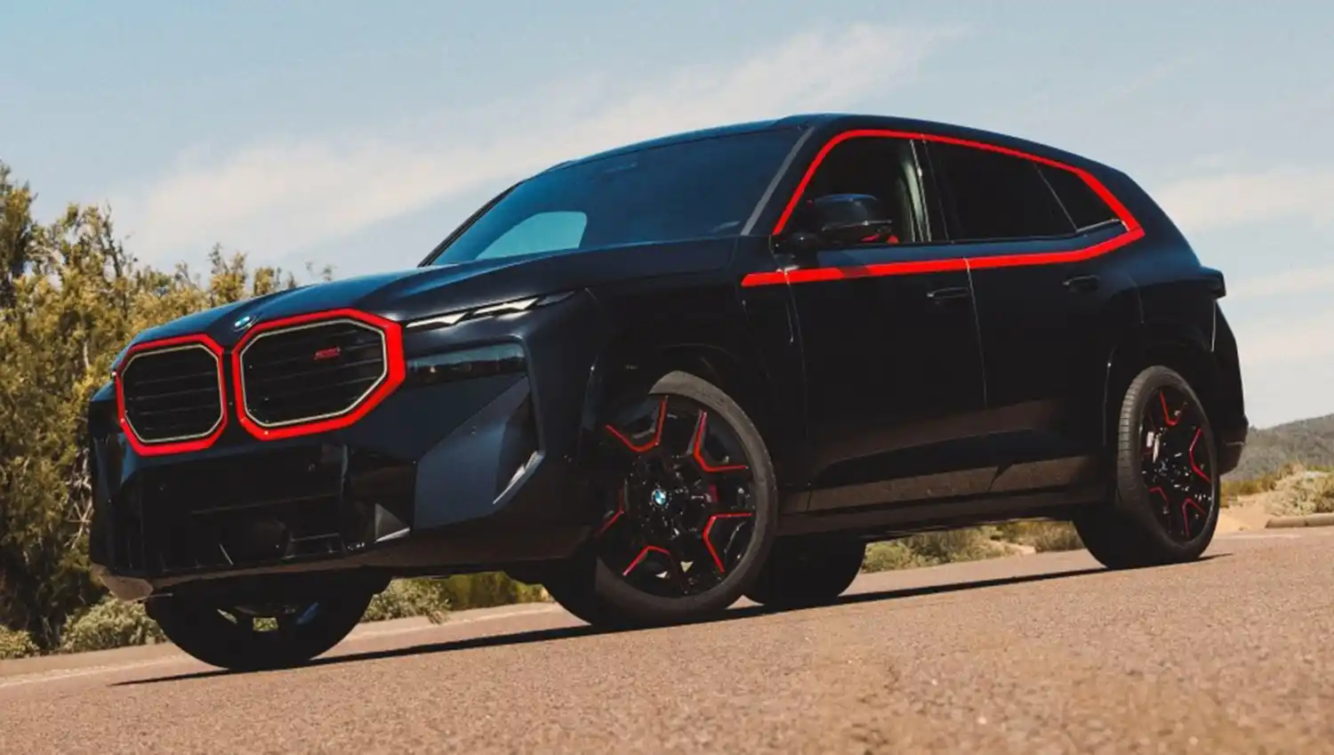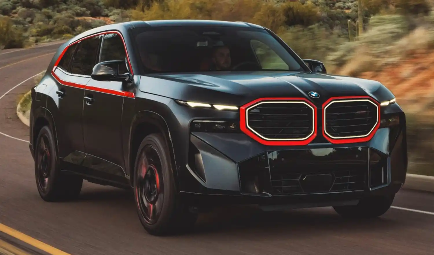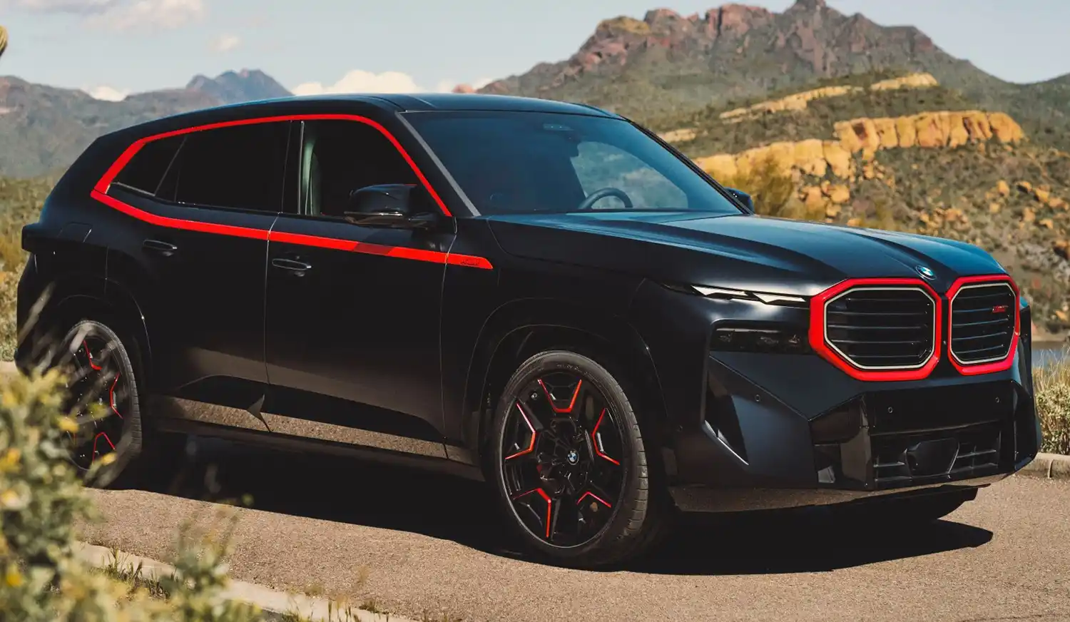 The distinguishing features of the performance-maximising XM variant include an accent band in Toronto Red metallic, although a black accent band also can be specified. The use of red also extends to the model badges and the wheel inserts. The BMW XM Label Red is fitted as standard with 21-inch light-alloy wheels. The surrounds for the BMW M kidney grille and diffuser elements come in Black high-gloss.