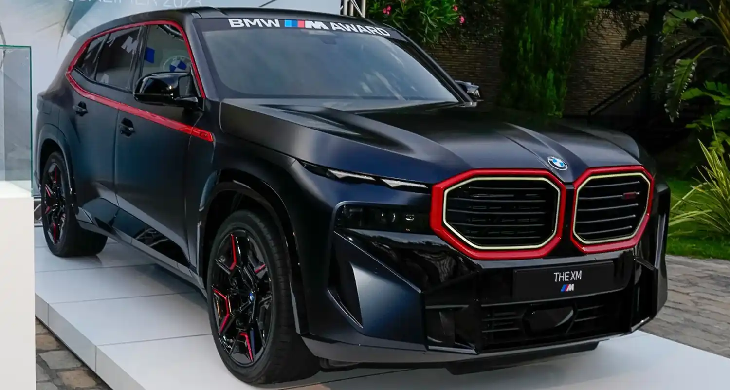 A black/red colour scheme also brings a visually appealing and sporting flavour to the interior of the BMW XM Label Red. The distinctive three-dimensional headliner and the trim for the body pillars have black surfaces. Red is used to bring an extra sense of exclusivity to the diamond-shaped upper sections of the backrests and the integrated head restraints of the seats for the driver and front passenger and the outer rear seats. This is complemented by red contrast stitching for the black surfaces of the seats, instrument panel, door trim and centre console, and the likewise red accents for the air vents. Among the other exclusive features of the BMW XM Label Red interior are a red “XM” badge below the control display and an interior trim strip in Carbon Fibre satin effect with red and blue accent threads highlighting this as an M car. Inside the limited-edition variant of the Label Red, customers will find a plaque below the control display reading “1 of 500”.