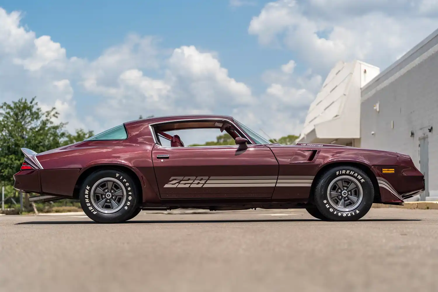 The 1980 Chevrolet Camaro Z28 Coupe represents a significant chapter in the evolution of the American muscle car, embodying the sporty styling and potent performance that defined the era. This particular model, heading to the Florida Summer Special 2025, showcases the Z28’s iconic design elements and is equipped with desirable features for both cruising and appreciating its historical significance. With its distinctive burgundy exterior, vibrant red interior, and V-8 power, this Camaro Z28 is a compelling piece of automotive history.