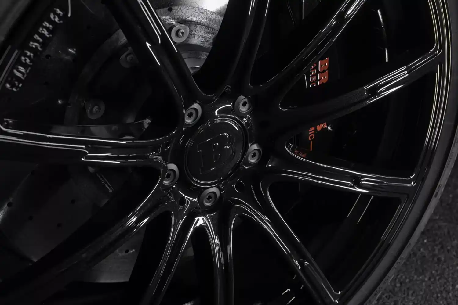 The combination of BRABUS front spoiler, caps for the large air intakes in the bumper and the special radiator grille that supplies the engine with more breathing air gives the supercar an even more striking face. Thanks to its sophisticated shape, the spoiler also reduces front-axle lift at high speeds.