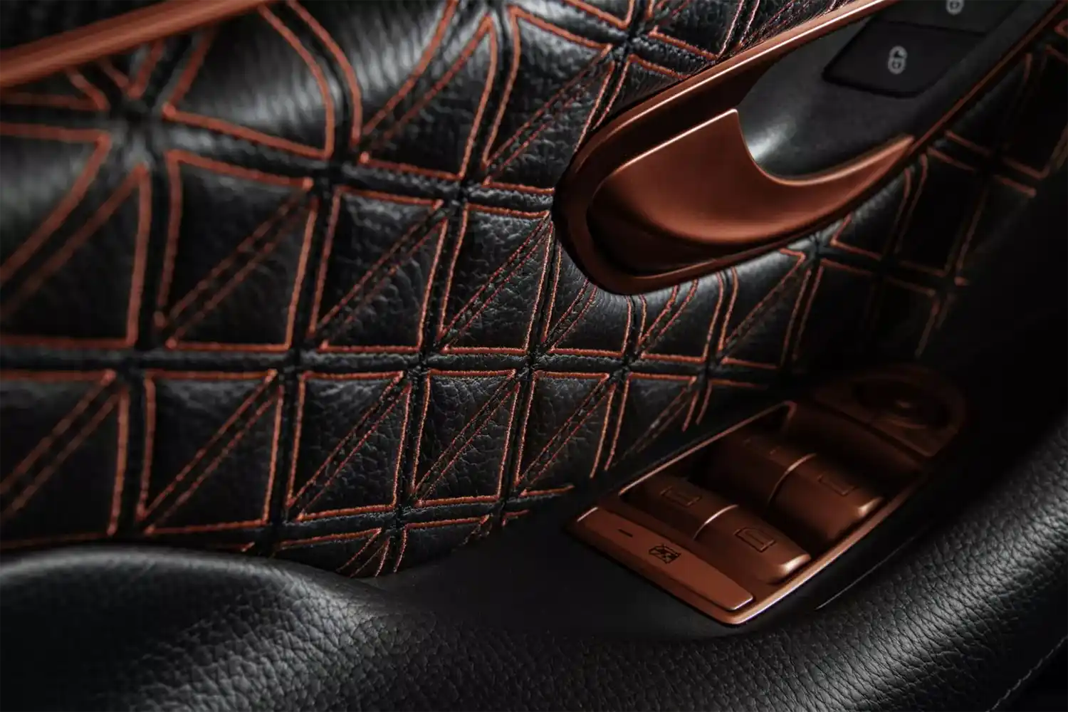 The cockpit of the BRABUS 930 supercar in these photos is upholstered with fine black leather contrasted with bright red stitching and piping. The seat surfaces and the entire floor of the cabin and the trunk feature triangle-design quilting applied with maximum precision. Optimal effect of the seat climate control is ensured by the exceedingly accurate perforations in the center sections.