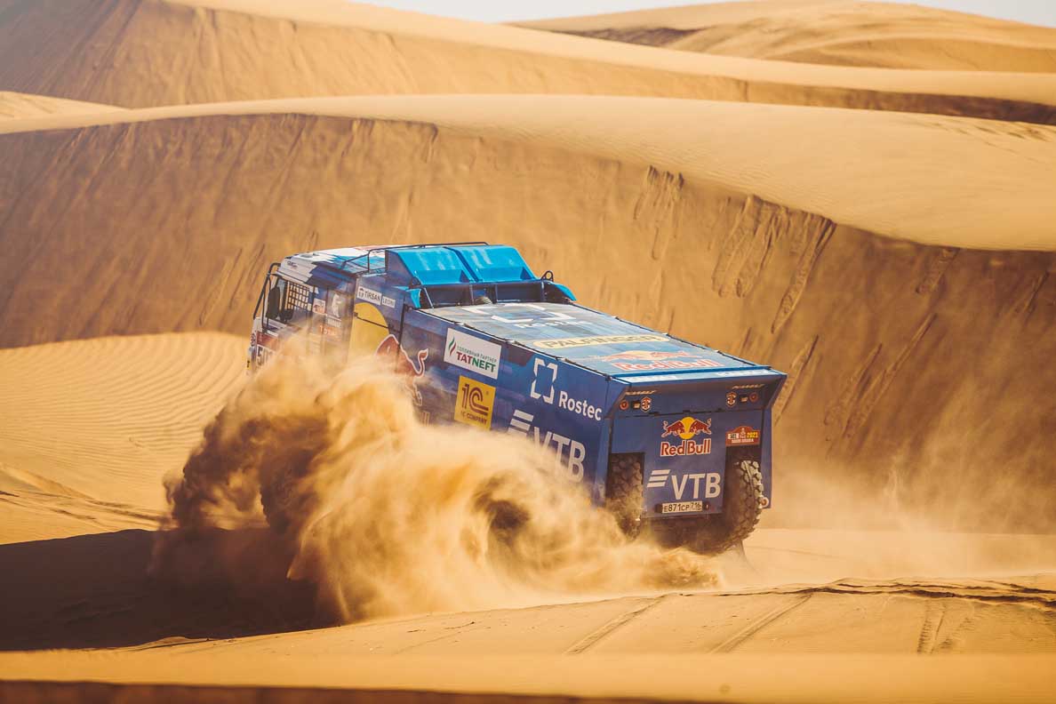 Sotnikov was joined on the overall podium by team-mates Anton Shibalov and Ayrat Mardeev, who finished second and third respectively. The victory makes it five wins on the bounce for KAMAZ, a feat they last achieved between 2002 and 2006.