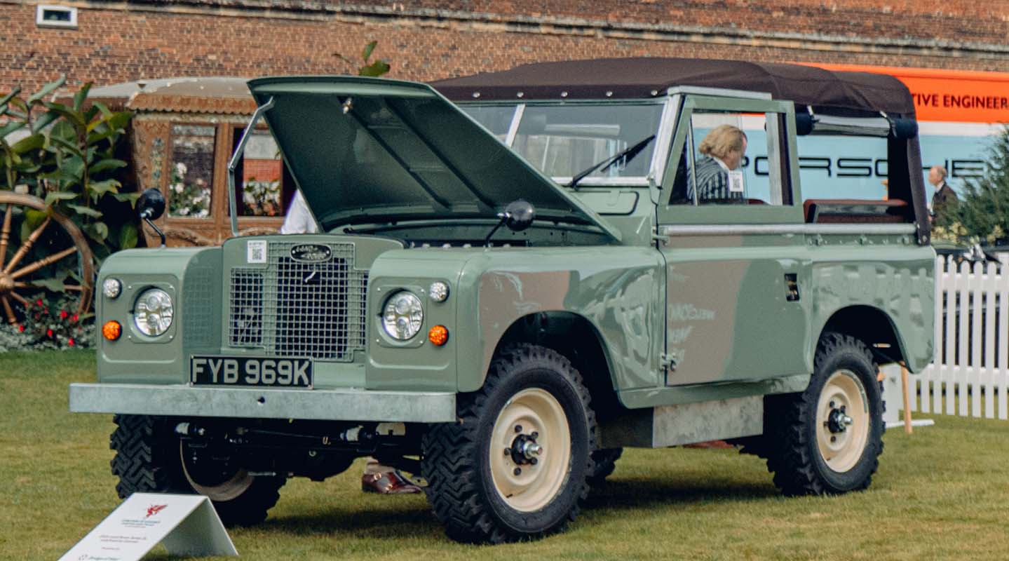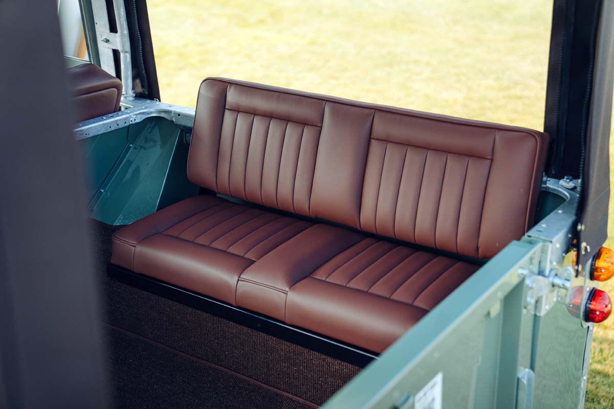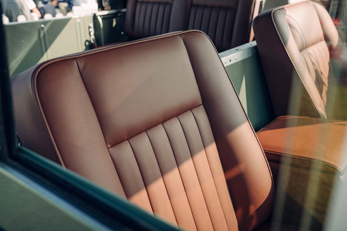 Friday also saw the public debut of an electric version of the Land Rover Series IIA by Everrati. Fully restored and updated with a state-of-the-art electric powertrain, its interior features Bridge of Weir leather throughout in Chestnut Automotive Nappa.